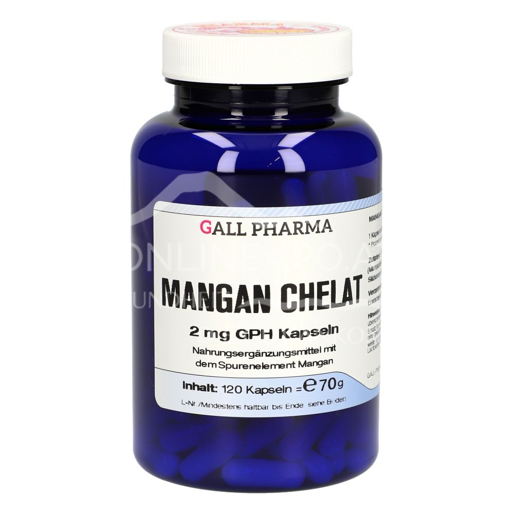 Gall Pharma Mangan Chelat 2 mg Kapseln bieten eine gut verträgliche Versorgung mit diesem wichtigen Spurenelement. Mangan trägt zu einem normalen Energiestoffwechsel bei, unterstützt die Knochenbildung und ist wichtig für das Nervensystem.