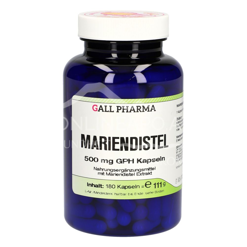 Die Gall Pharma Mariendistel 500 mg Kapseln sind ein Nahrungsergänzungsmittel mit 500 mg Mariendistel Extrakt standardisiert auf 80 % Silymarin pro Kapsel.