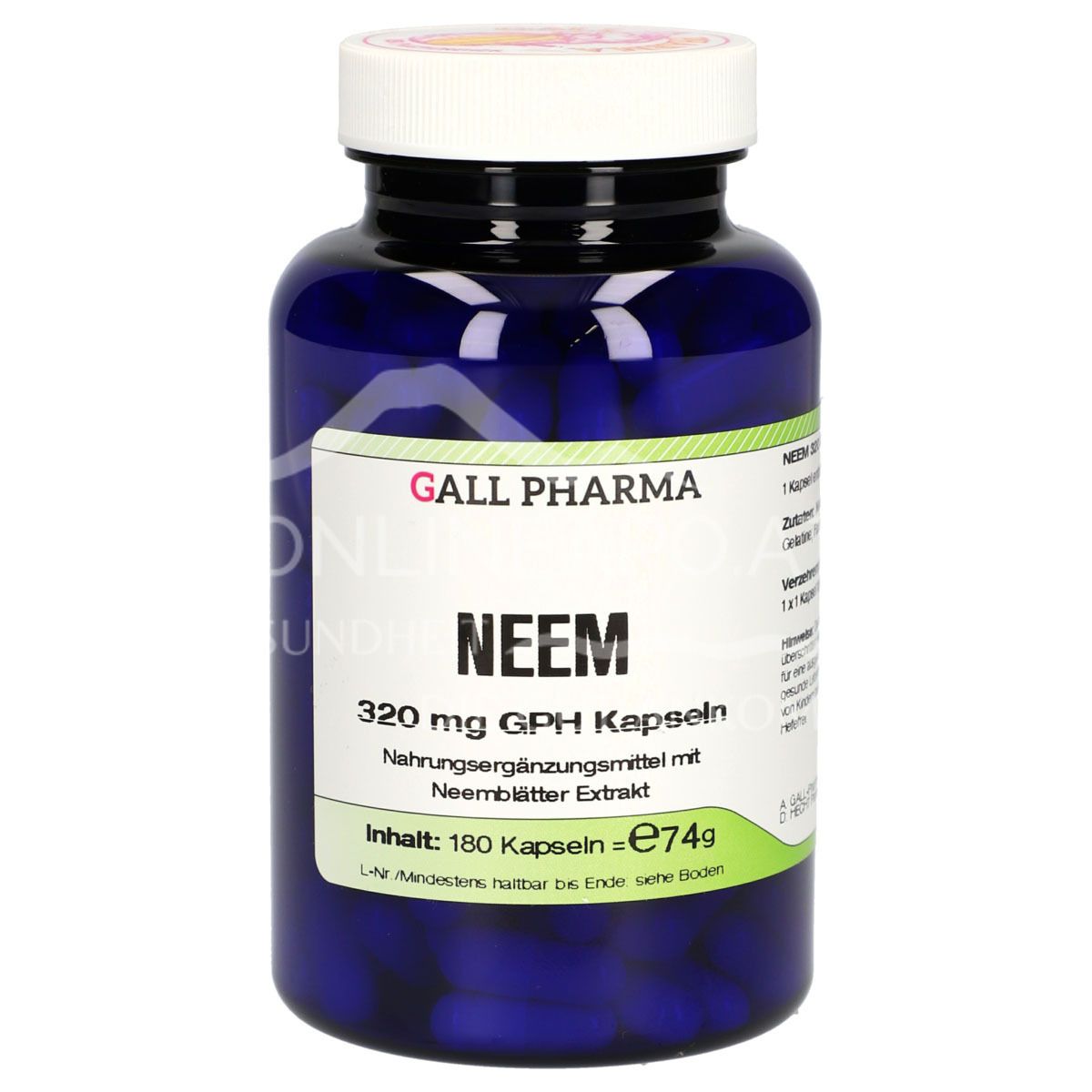 Entdecken Sie die natürliche Kraft des indischen Neembaums mit Gall Pharma Neem 320 mg Kapseln. Jede Kapsel enthält reines, hochdosiertes Neemblatt-Pulver in geprüfter Apothekenqualität zur Unterstützung des allgemeinen Wohlbefindens.