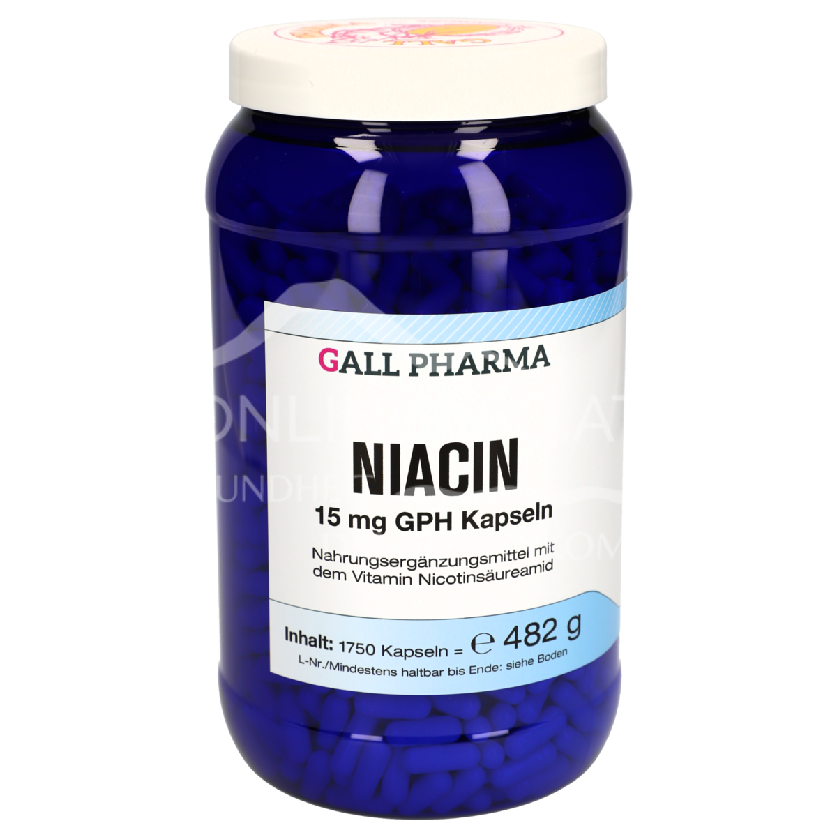 Niacin 15 mg GPH Kapseln enthalten 15 mg Nicotinsäureamid in einer Hartgelatinekapsel. Das Vitamin hat vielfältige Funktionen im menschlichen Körper. Es ist Bestandteil von NAD und NADP, die als Coenzyme an Atmung und Wasserstoffübertragung beteiligt sind. Entscheidend sind diese Vorgänge für die Funktionen des Herzens, der Nerven und den Energiestoffwechsel. Zusätzlich kann es eine Absenkung der Blutfettwerte erwirken. Außerdem ist das Vitamin am Auf- und Abbau von Kohlenhydraten, Fettsäuren und Aminosäuren beteiligt und ist zudem wichtig für den Energiehaushalt der Zelle.
