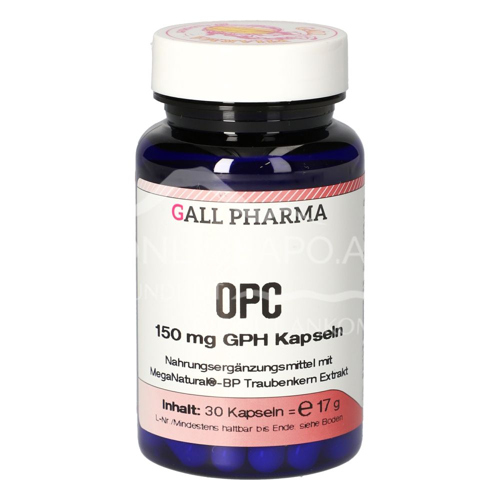 Gall Pharma OPC Kapseln sind ein Nahrungsergänzungsmittel mit 150 mg Oligomeren Proanthocyanidinen (OPC) und 180 mg Vitamin C pro Kapsel. Unterstützen bei Bindehautentzündungen, Lichtempfindlichkeit und Trockenheit der Augen.