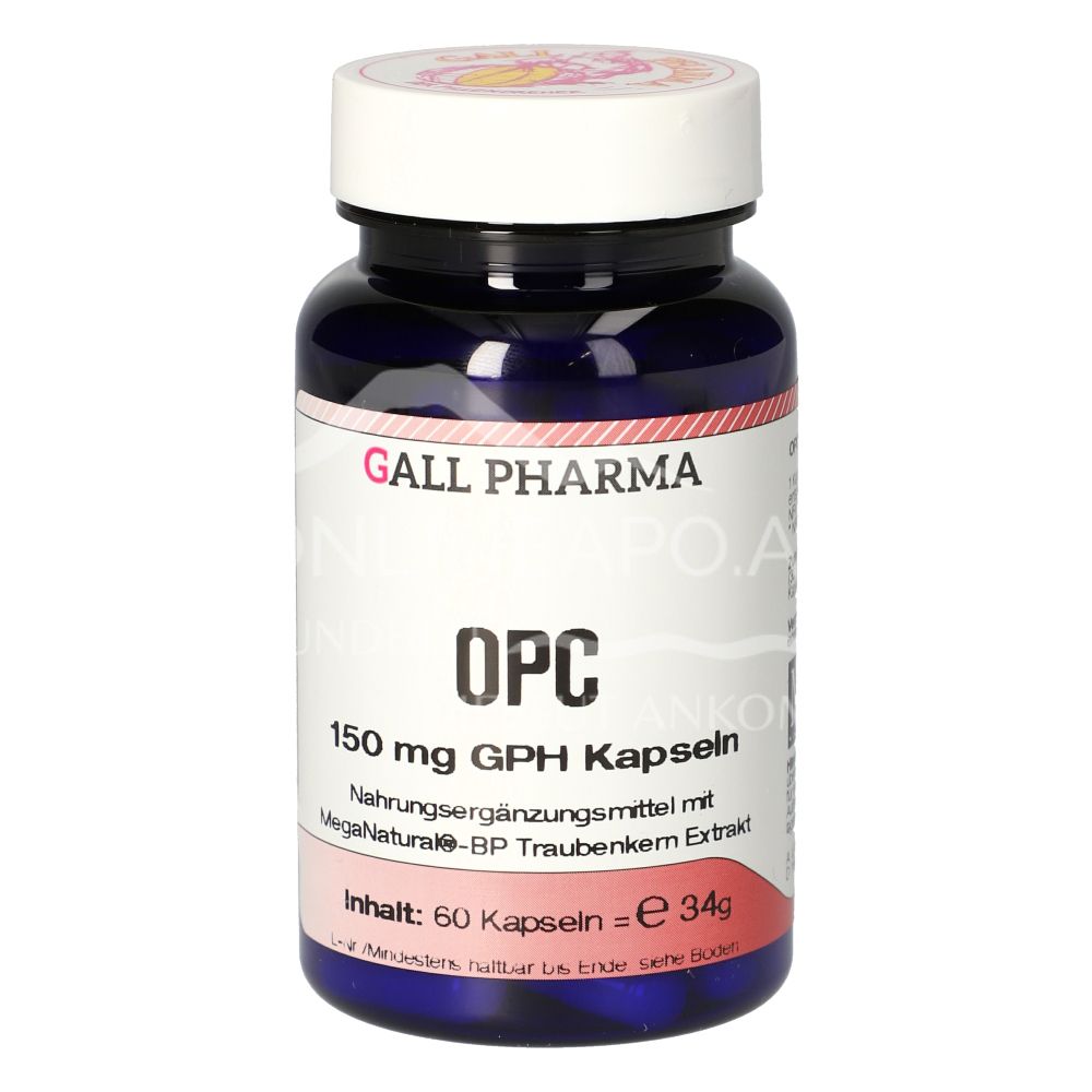 Gall Pharma OPC Kapseln sind ein Nahrungsergänzungsmittel mit 150 mg Oligomeren Proanthocyanidinen (OPC) und 180 mg Vitamin C pro Kapsel. Unterstützen bei Bindehautentzündungen, Lichtempfindlichkeit und Trockenheit der Augen.