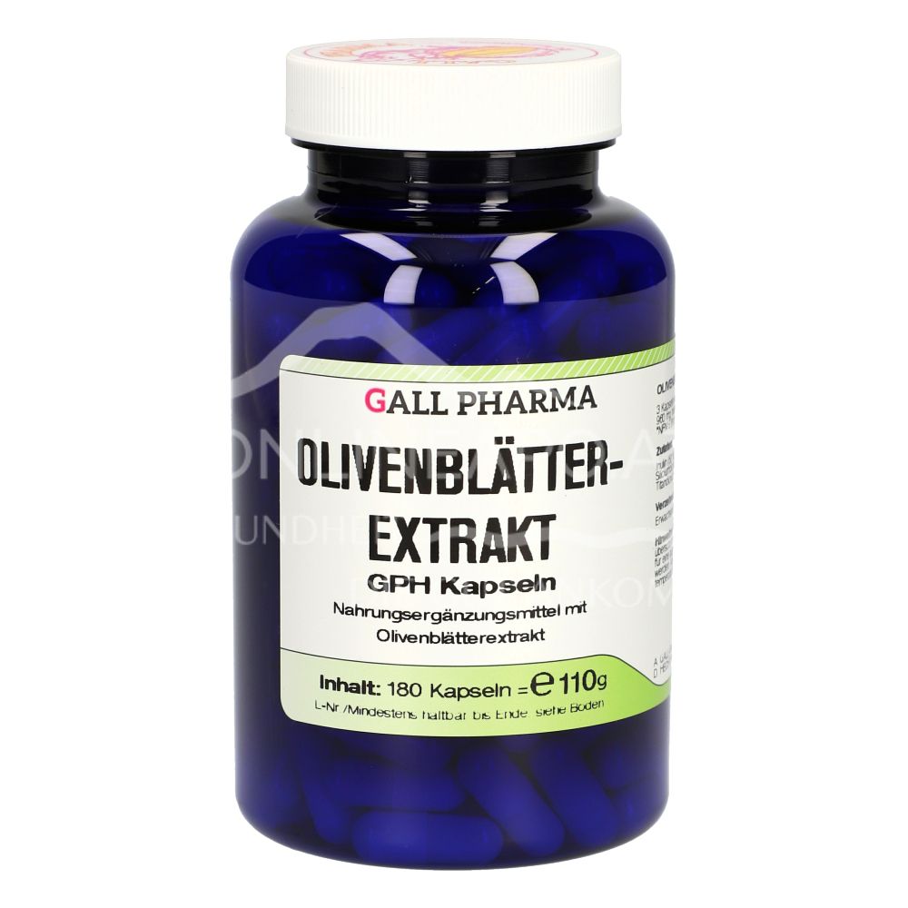 Gall Pharma Olivenblätterextrakt Kapseln enthalten standardisierten Olivenblätterextrakt entsprechend etwa 830 mg Olivenblättern und 20 mg Oleuropein in einer Hartgelatinekapsel. Schützen die Blutfette vor freien Radikalen und unterstützen die Darmflora.
