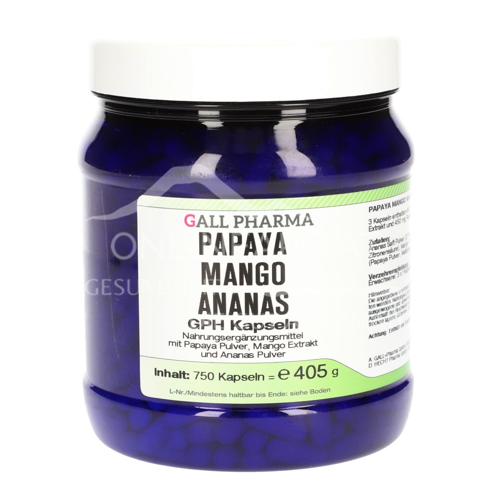 Gall Pharma Papaya Mango Ananas Kapseln sind ein Nahrungsergänzungsmittel aus exotischen Früchten die als echte Vitamin- & Mineralstoffspender gelten. Diese können Diäten unterstützen, als natürliche Verdauungshilfe dienen und das Immunsystem stärken.