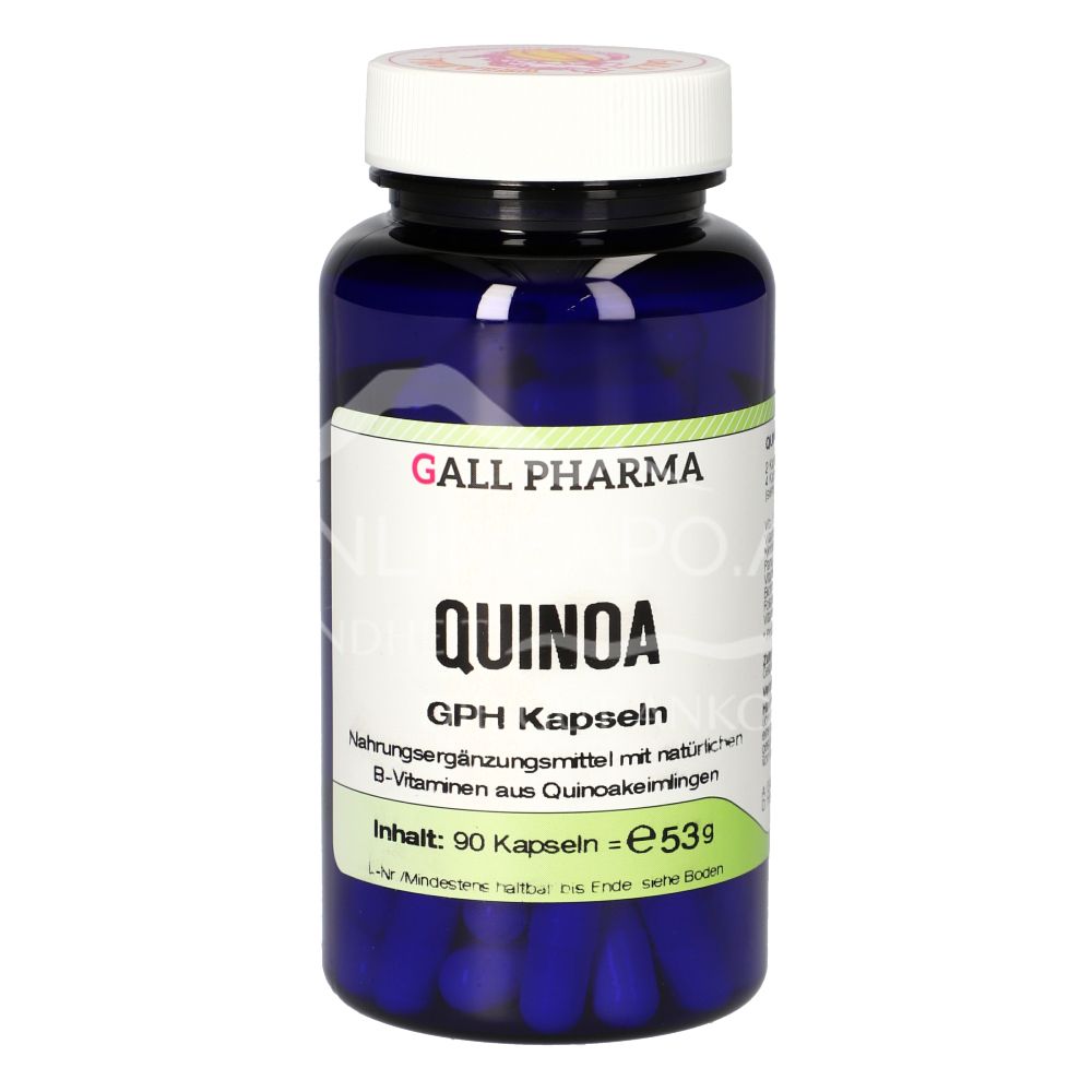 Die Gall Pharma Quinoa Kapseln sind ein Nahrungsergänzungsmittel mit natürlichen B-Vitaminen aus Quinoa Keimlingen. Jede Kapsel enthält 500 mg PanMol®-B-Complex Pulver mit biologisch aktiven natürlichen B-Vitaminen.