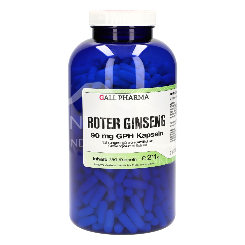 Gall Pharma Roter Ginseng Kapseln sind ein Nahrungsergänzungsmittel mit 90 mg Trockenextrakt aus Ginsengwurzel pro Kapsel. Kann die körperliche und geistige Leistungsfähigkeit unterstützen und den Energiestoffwechsel fördern.