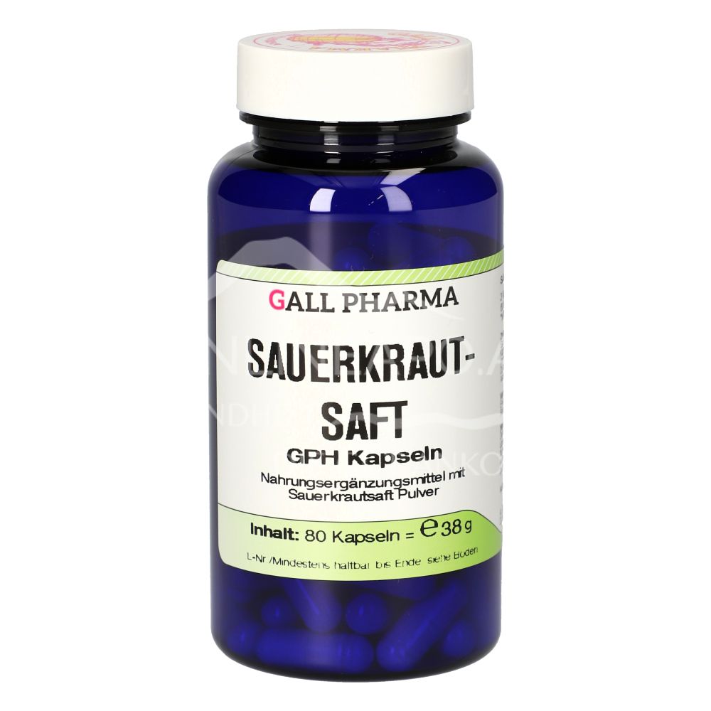 Gall Pharma Sauerkrautsaft Kapseln sind ein Nahrungsergänzungsmittel mit 373 mg Sauerkrautsaftpulver, Vitamin C und Beta-Carotin pro Kapsel. Unterstützen die Entschlackung, regen die Darmflora an, schützen die Darmbakterien und stärken das Immunsystem.