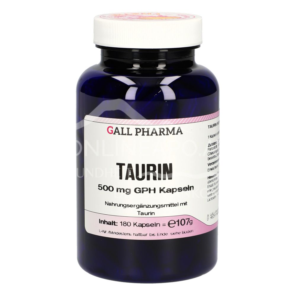 Gall Pharma Taurin Kapseln sind ein Nahrungsergänzungsmittel mit 500 mg Taurin pro Kapsel. Die Aminosäure schützt vor freien Radikalen, unterstützt die Gallenfunktion und den Fettstoffwechsel und kann altersbedingte Veränderungen der Augen vorbeugen.