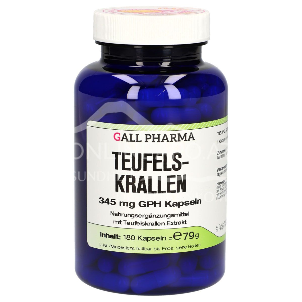 Die Gall Pharma Teufelskrallen 345 mg Kapseln sind ein Nahrungsergänzungsmittel mit Teufelskrallen Extrakt. Die Teufelskralle (Harpagophytum procumbens) ist eine Heilpflanze aus Südafrika.