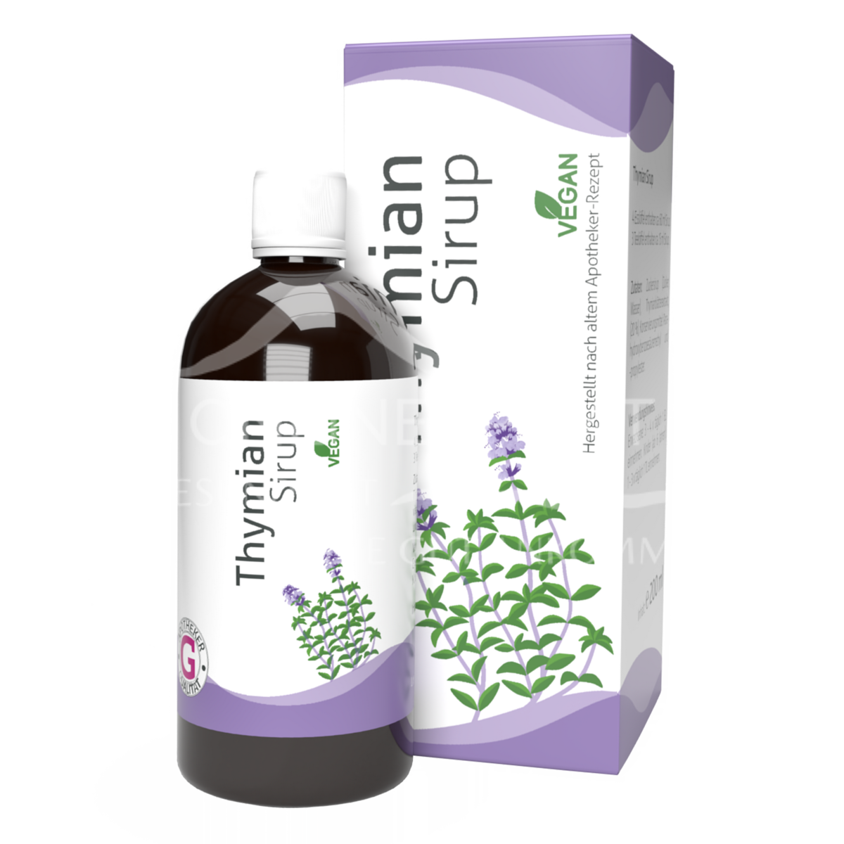 - Zusammensetzung: Zuckersirup (Zucker, Wasser), Thymianblätterextrakt (20 %), Konservierungsmittel: Parahydroxybenzoesäuremethyl- und - propylester.