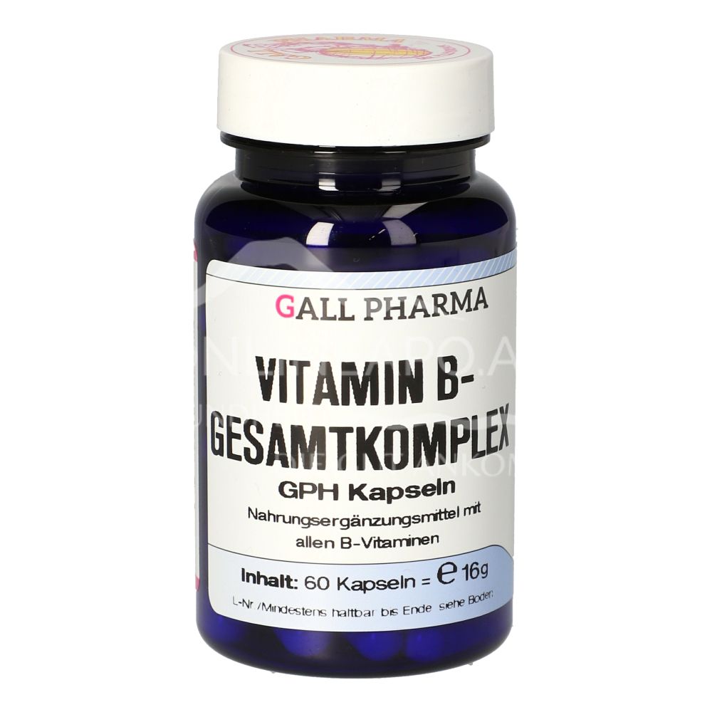 Gall Pharma Vitamin B Gesamtkomplex Kapseln sind ein Nahrungsergänzungsmittel aus 8 B-Vitaminen. Der Vitamin B-Komplex unterstützt den Stoffwechsel, verbessert die Durchblutung und Blutbildung und trägt zur normalen Nervenfunktion bei.