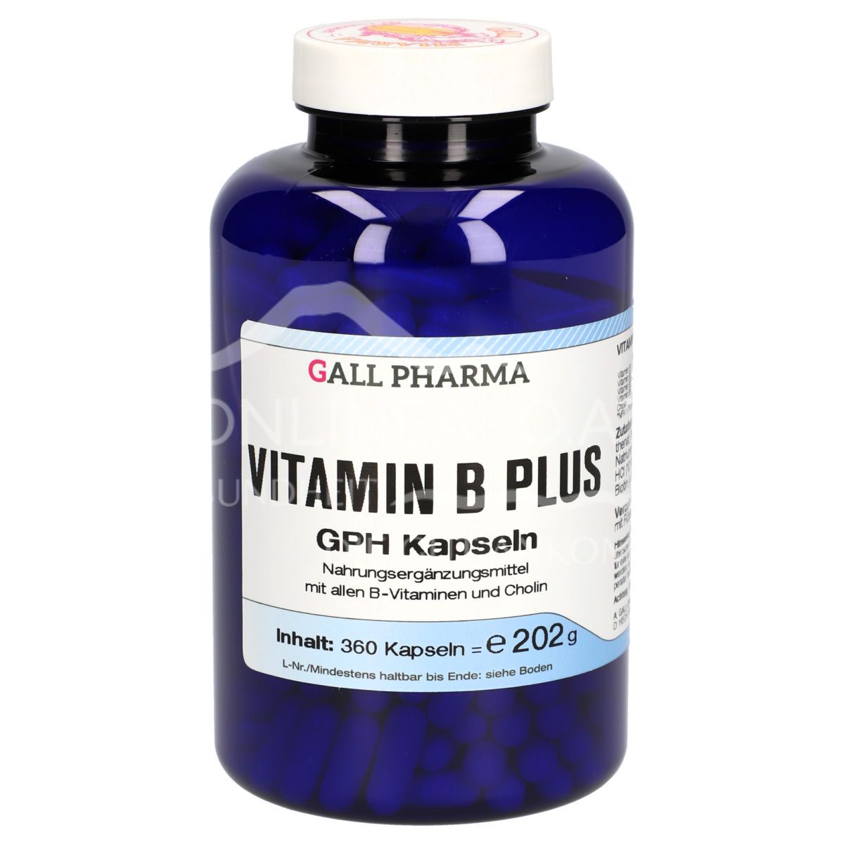 Die B-Vitamine sind wasserlösliche Vitamine und können nicht im Körper gespeichert werden. Das heißt, sie müssen regelmäßig über die Nahrung zugeführt werden. In Vitamin B Plus GPH Kapseln ist Thiamin (Vitamin B1), Riboflavin (Vitamin B2), Niacin (Vitamin B3), Pantothensäure (Vitamin B5), Pyridoxin (Vitamin B6), Biotin (Vitamin B7), Folsäure (Vitamin B9) und Cobalamin (Vitamin B12) enhalten. Zusätzlich ist Cholin enthalten, dies ist für eine funktionierende Reizweiterleitung von Nerven zu Muskeln wichtig und spielt auch für die Leber- und Gehirnfunktion eine wesentliche Rolle.