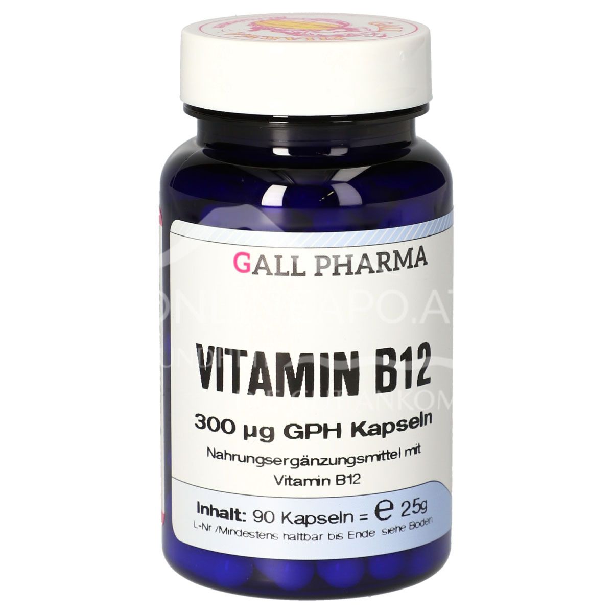 Die Gall Pharma Vitamin B12 300 µg Kapseln sind ein Nahrungsergänzungsmittel mit Methylcobalamin (Vitamin B12). Vitamin B12 unterstützt die normale Funktion des Energiestoffwechsels, Nervenfunktion und vielem mehr.