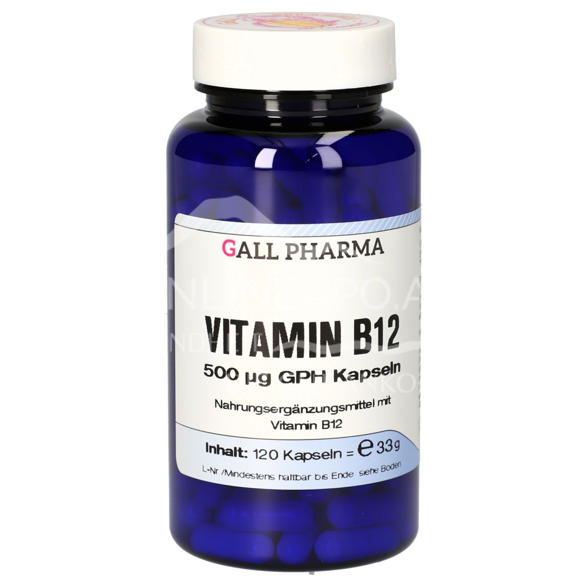 Die Gall Pharma Vitamin B12 500 µg Kapseln sind ein Nahrungsergänzungsmittel mit Methylcobalamin (Vitamin B12). Vitamin B12 unterstützt die normale Funktion des Energiestoffwechsels, Nervenfunktion und vielem mehr.
