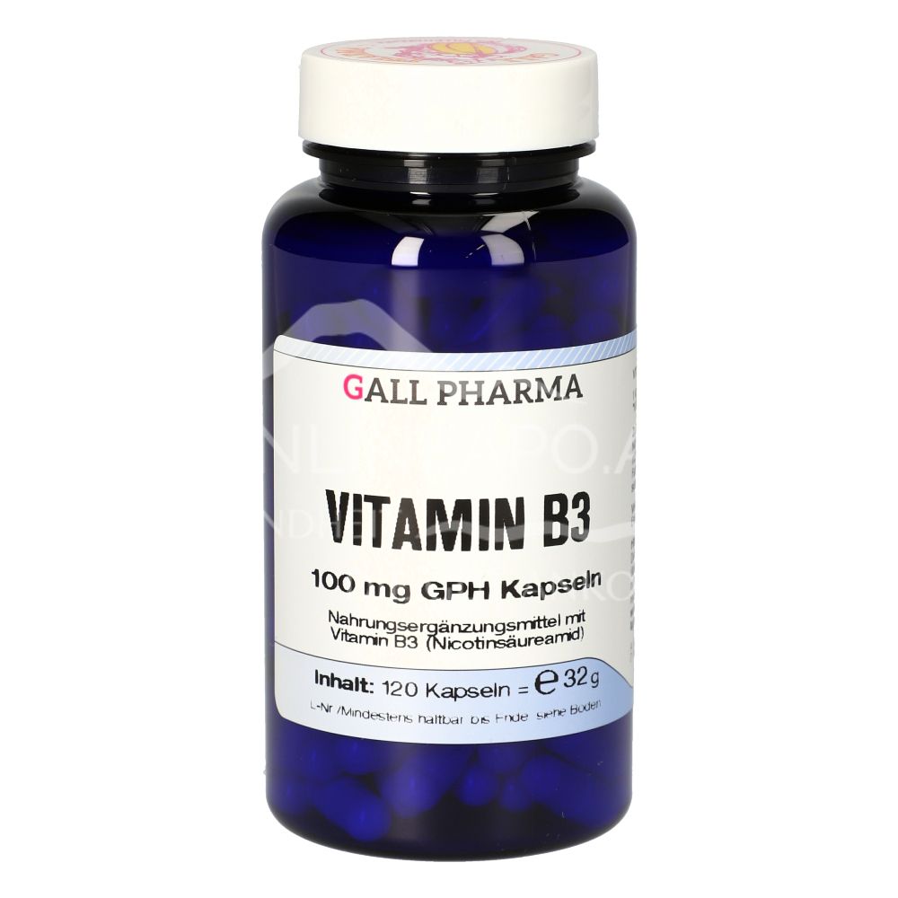 Die Gall Pharma Vitamin B3 100 mg Kapseln sind ein Nahrungsergänzungsmittel mit Vitamin B3 (Nicotinsäureamid). Hinter dem Begriff Niacin oder Vitamin B3 verbergen sich gleich zwei Substanzen: Nicotinsäure und Nicotinamid/Nicotinsäureamid.