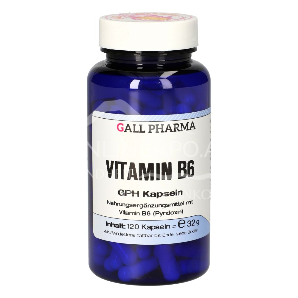 Gall Pharma Vitamin B6 Kapseln sind ein Nahrungsergänzungsmittel mit 2 mg Pyridoxinhydrochlorid pro Kapsel. Vitamin B6 unterstützt den Energiestoffwechsel, stärkt das Immunsystem und trägt zu einer normalen Funktion des Nervensystems bei.
