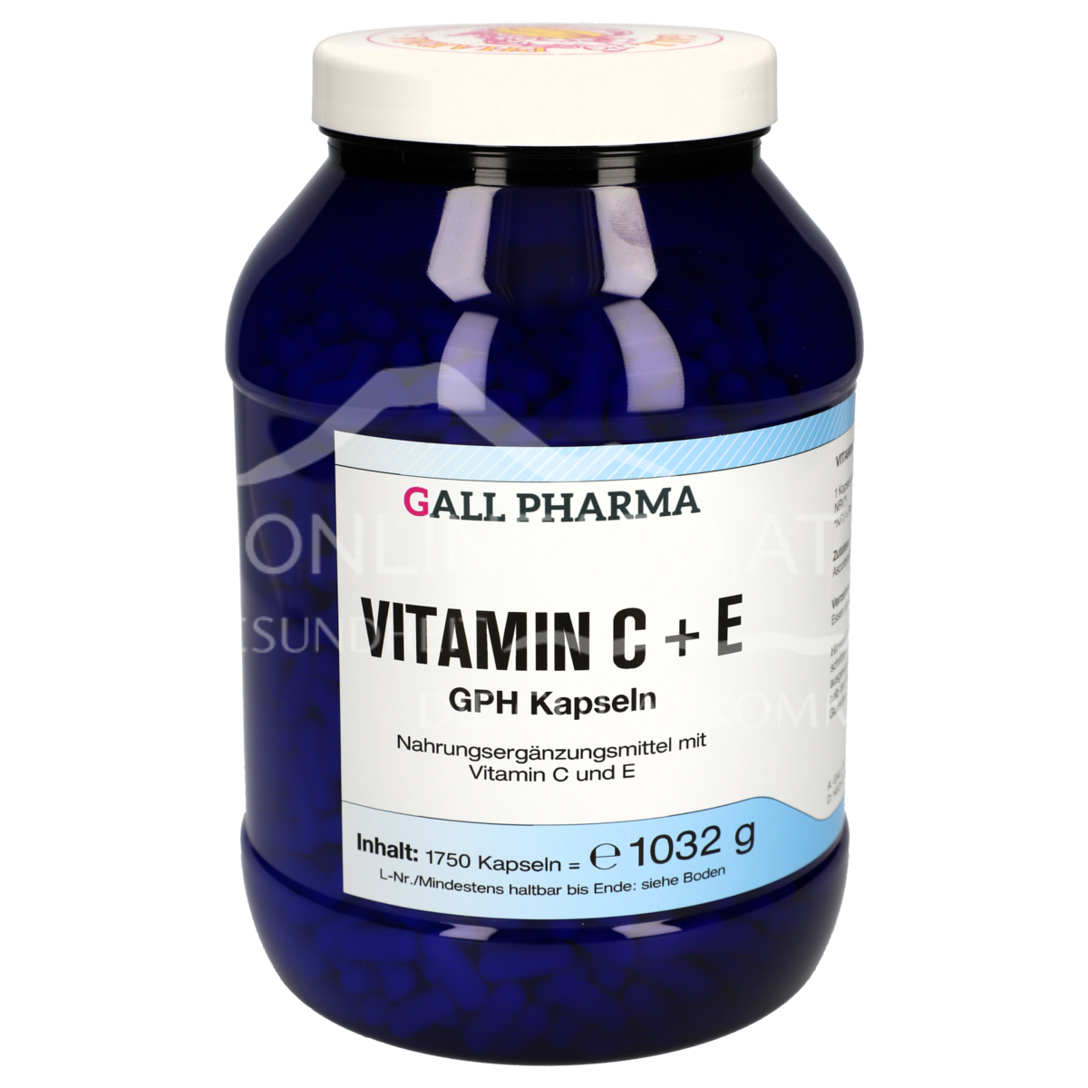 Gall Pharma Vitamin C + E Kapseln sind ein Nahrungsergänzungsmittel mit 180 mg Vitamin C und 30 mg natürliches Vitamin E aus Soja pro Kapsel. Die Vitaminkombination unterstützt das Immunsystem, schützt vor oxidativem Stress und erhöht die Eisenaufnahme.