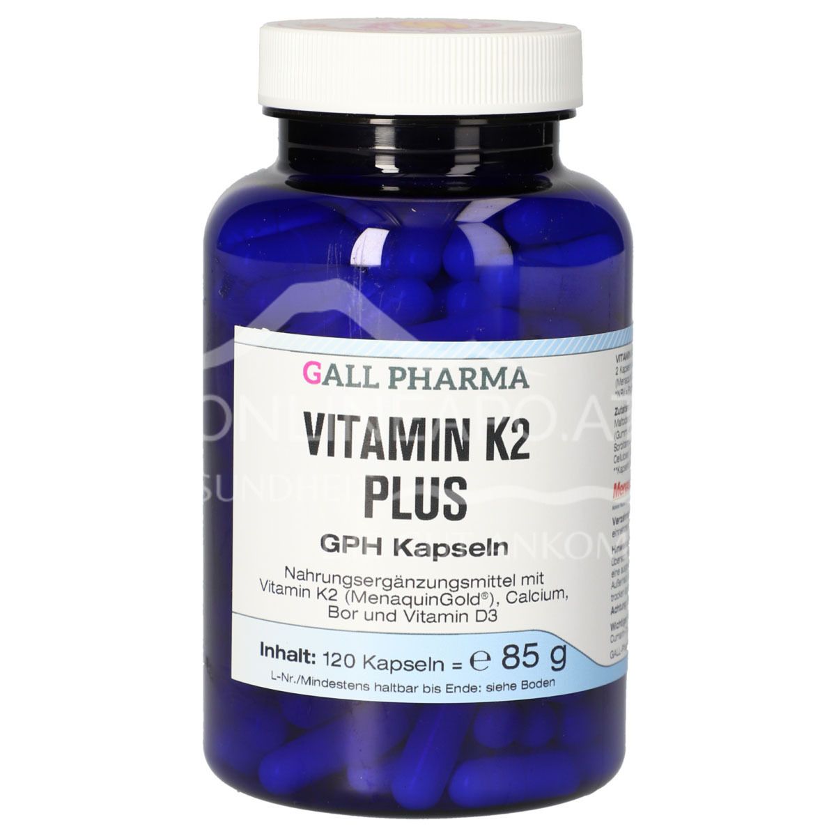 Die Gall Pharma Vitamin K2 Plus Kapseln sin dein Nahrungsergänzungsmittel mit Vitamin K2, Calcium, Bor und Vitamin D3. Die Zusammensetzung trägt zur Erhaltung normaler Knochen und einer gesunden Blutgerinnung bei.