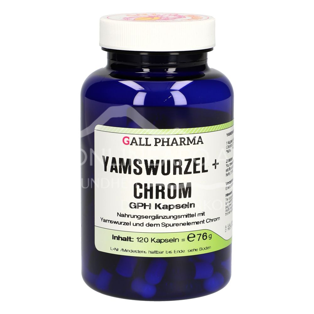 Gall Pharma Yamswurzel + Chrom Kapseln sind ein Nahrungsergänzungsmittel mit 450 mg Yamswurzel-Extrakt aus mexikanischer Yamswurzel und 150 µg Chromhefe pro Kapsel. Unterstützt und liefert Nährstoffe in den Wechseljahren.