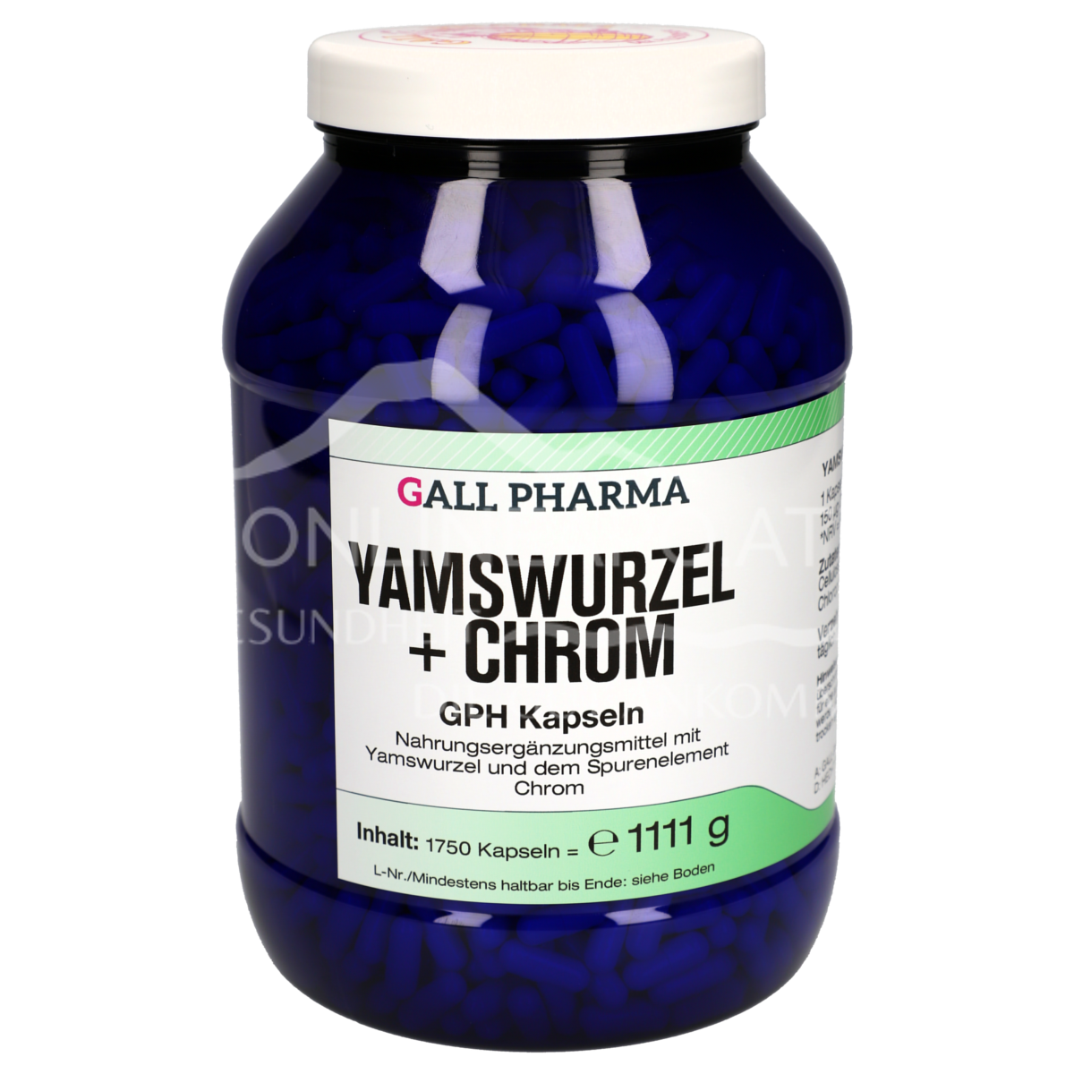 - Zutaten: Yamswurzel Extrakt; Chromhefe Kapselhülle: Cellulose; Farbstoffe in der Kapselhülle: Titandioxid, Chlorophyllin