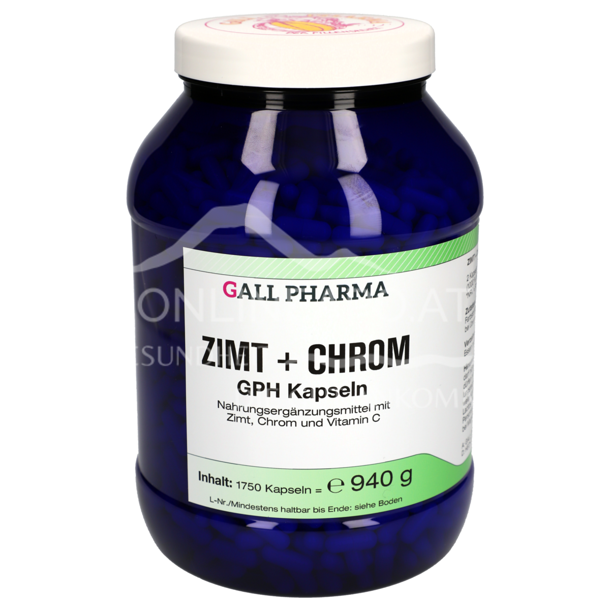 Studien belegen, dass der Verzehr von 3 – 6 g Zimt pro Tag den Blutzuckerspiegel bei Diabetes Typ 2 senkt. Auch eine positive Wirkung auf die Blutfette LDL-Cholesterin, Triglyceride und Gesamtcholesterin wird beschrieben. Das den Blutglucosespiegel beeinflussende Molekül scheint das Flavonoid Methylhydroxylchalconpolymer (MHCP) zu sein. MHCP des Zimts hat in Verbindung mit Insulin synergistische insulinverstärkende Wirkung. Das dreiwertige Chrom ist Bestandteil des Glucosetoleranzfaktors (GTF). Dieser steuert die Bindung von Insulin an den spezifischen Insulinrezeptor der Zellmembran. Chrom aktiviert demnach – insulinabhängig – den Glucosetransport in die Zelle, wodurch der Blutzuckerspiegel sinkt. Organische Chromverbindungen (Chromhefe) werden vom Körper besser resorbiert als anorganische. Vitamin C erhöht die Chromaufnahme. Zimt + Chrom GPH Kapseln sind ein diätetisches Lebensmittel für besondere medizinische Zwecke zur diätetischen Behandlung von Diabetes Mellitus Typ II.