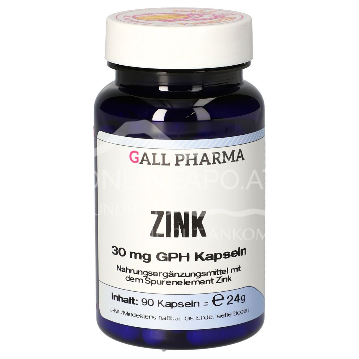 Die Gall Pharma Zink 30 mg Kapseln sind ein Nahrungsergänzungsmittel mit dem essentiellen Spurenelement Zink. Zink ist wichtig für viele Körperfunktionen, wie Immunsystem, Haut und Haare, und vieles mehr.