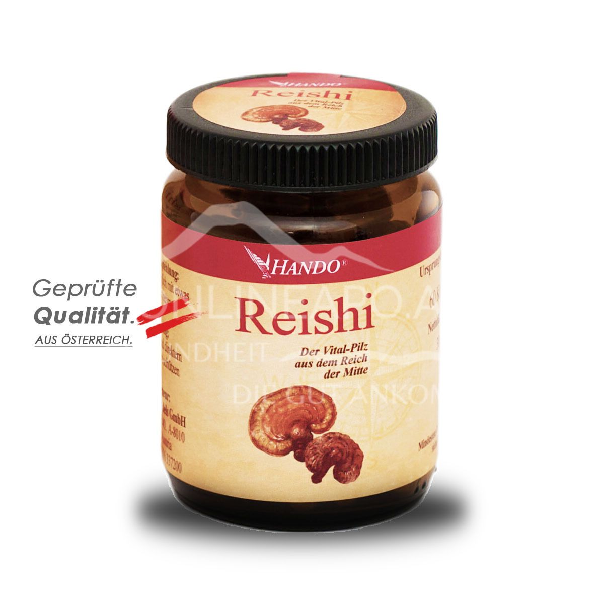 HANDO Reishi – DAS ORIGINAL seit 1997. Der „Pilz der Unsterblichkeit“ – Reishi Vitalpilz hilft nicht nur gegen vorzeitige Alterungserscheinungen. Reishi Kapseln werden auch zur Herz-Kreislauf-Unterstützung, sowie zur Steigerung des Leistungsvermögens eingesetzt. Für den in der Botanik als „Ganoderma lucidum“ bezeichneten Reishi-Pilz gilt: