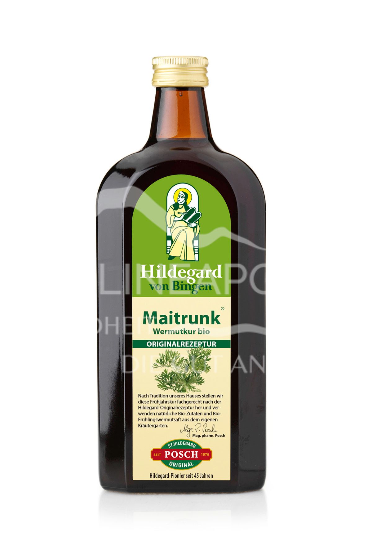 Im Maitrunk kommen die besonderen Eigenschaften von Wein, Frühlingswermutsaft und Honig zusammen. Der Maitrunk ist ein natürliches Nahrungsergänzungsmittel, das nach der Hildegard-Originalrezeptur, seit 40 Jahren fachgerecht im Hause Posch (ganz frisch) hergestellt wird.