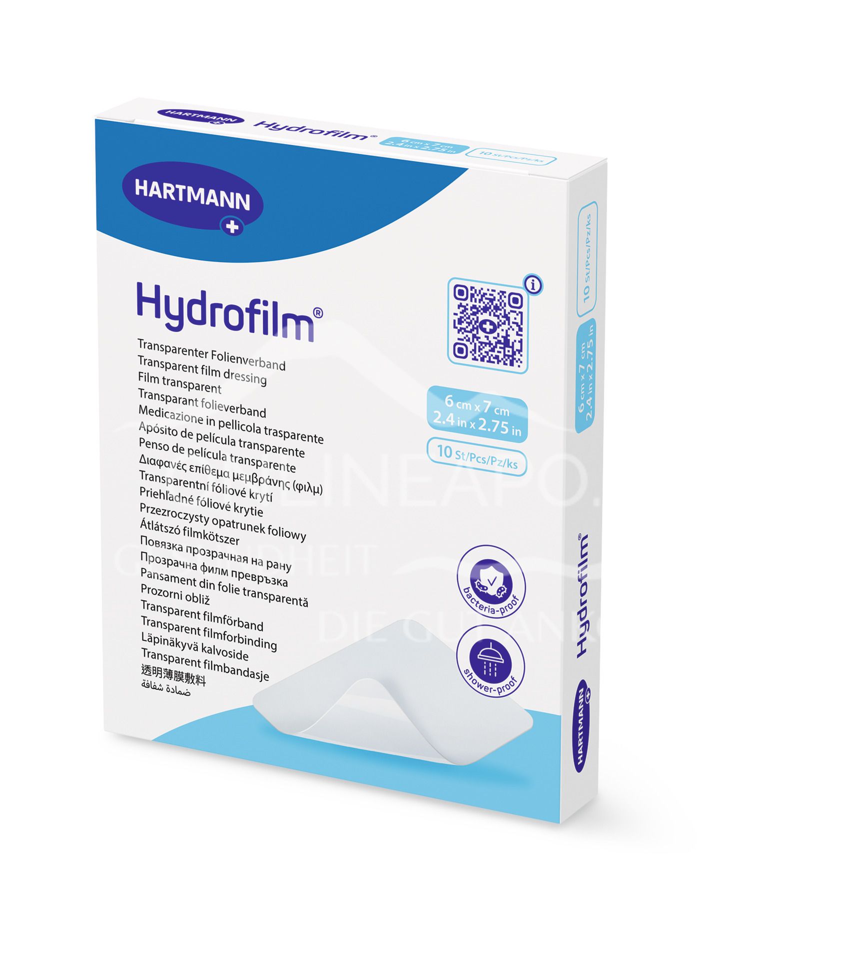 Der Hydrofilm® Transparentverband von Hartmann ist ein selbsthaftender transparenter Folienverband, aus keim- und wasserdichter, semipermeabler Polyurethan-Folie, mit hautfreundlichem Kleber für das praktisch schmerzfreie Abziehen.