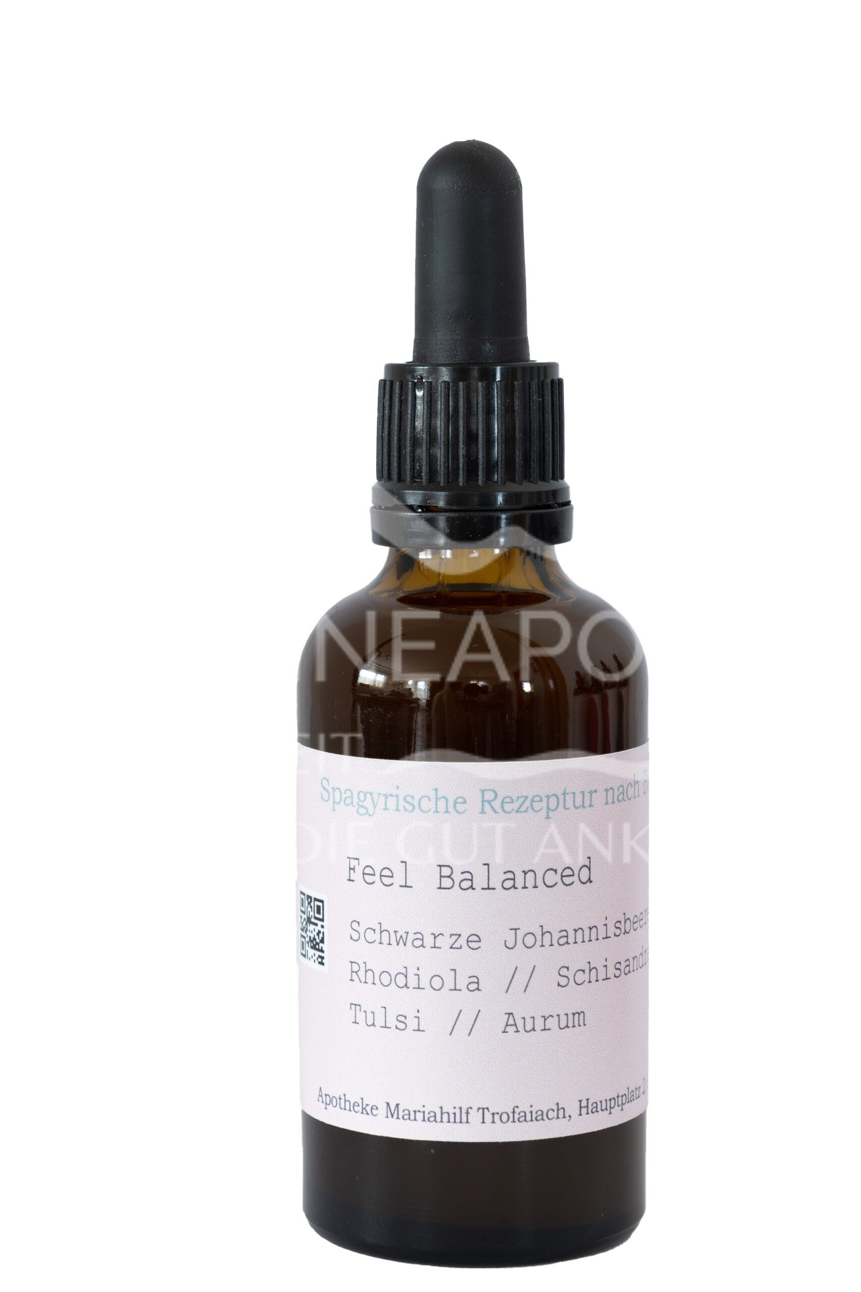 Das Frauenelixier „Feel Blanced“ wird speziell nach einer spagyrischen Rezeptur von Katharina Maria Burkhardt mit Schwarzer Johannisbeere, Schisandra, Rhodiola, Tulsi und Aurum hergestellt.
