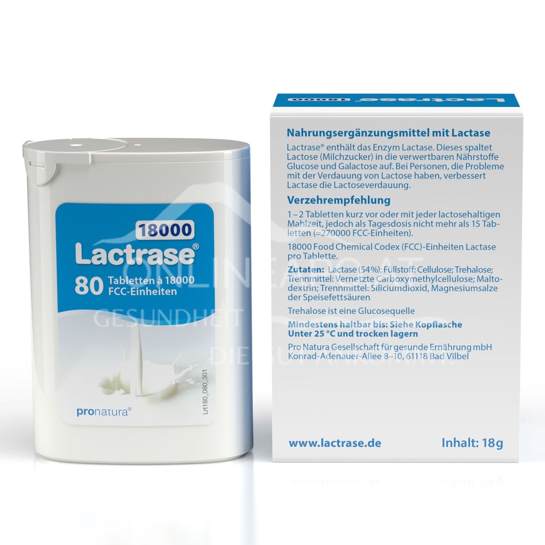 - Hinweise: 18000 Food Chemical Codex (FCC)-Einheiten Lactase pro Tablette.