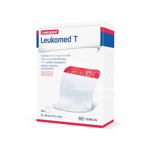 Ein Wundverband, zwei Anwendungen: Leukomet T fixiert einerseits Katheter, Kompressen und andere medizinische Hilfsmittel wasser- und keimdicht. Andererseits werden nicht mehr sezernierende Wunden vor Reibung und Scherkräften geschützt. Der Klebeauftrag erhält die Atmungsaktivität der Folie und reduziert das Risiko von Mazerationen. Durch die hohe Wasserdampfdurchlässigkeit werden Feuchtigkeitsansammlungen verhindert und eine sichere Anwendung gewährleistet. Die hochflexible, wasserdichte Folie hat einen sehr hohen Tragekomfort und sitzt auch an Gelenken und Extremitäten wie eine zweite Haut. Leukomet T ist steril und stellt einen zuverlässigen Schutz gegen Bakterien und Keime dar. Die abgerundeten Ecken gewährleisten eine sichere Fixierung. Die Transparenz ermöglicht eine kontinuierliche Inspektion der Wunde oder Fixierung. Das Applikationssystem mit dem roten Streifen gewährleistet eine unkomplizierte, schnelle Anwendung, auch mit Handschuhen. Leukomed T besteht aus einer transparenten und extradünnen Polyurethanfolie, beschichtet mit einem Polyacrylatkleber.