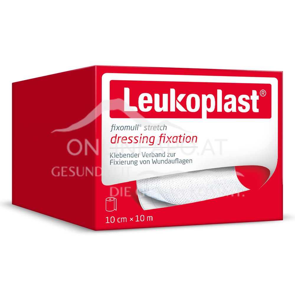Leukoplast® Fixomull® stretch fixiert Wundauflagen, Verbandmull und saugfähige Kompressen. Es haftet sicher, ist durch die Querelastizität anschmiegsam und passt sich gut stark konturierten Körperpartien an.