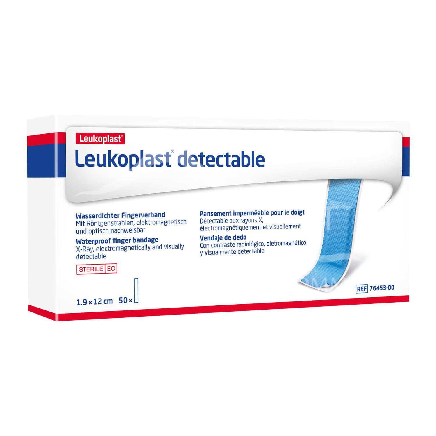 - Nachweisbar und sichtbar: Die Leukoplast detectable Wundschnellverbände enthalten Aluminium- und Wolframfäden und können so von Metalldetektoren und Röntgenstrahlen erkannt werden. Der Verband selbst ist blau, wodurch er bei Verlust leicht lokalisierbar ist.
