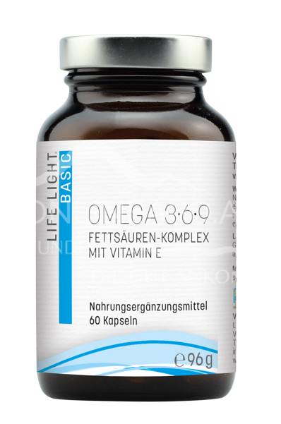 Life Light Basic Omega 3-6-9 Kapseln sind ein Nahrungsergänzungsmittel mit einem synergistischer Omega-Komplex mit wertvollen Omega 3, 6 und 9-Fettsäuren aus EPA/DHA-reichem Kaltwasserfisch und ausgewählten Pflanzenölen sowie zellschützendem Vitamin E.