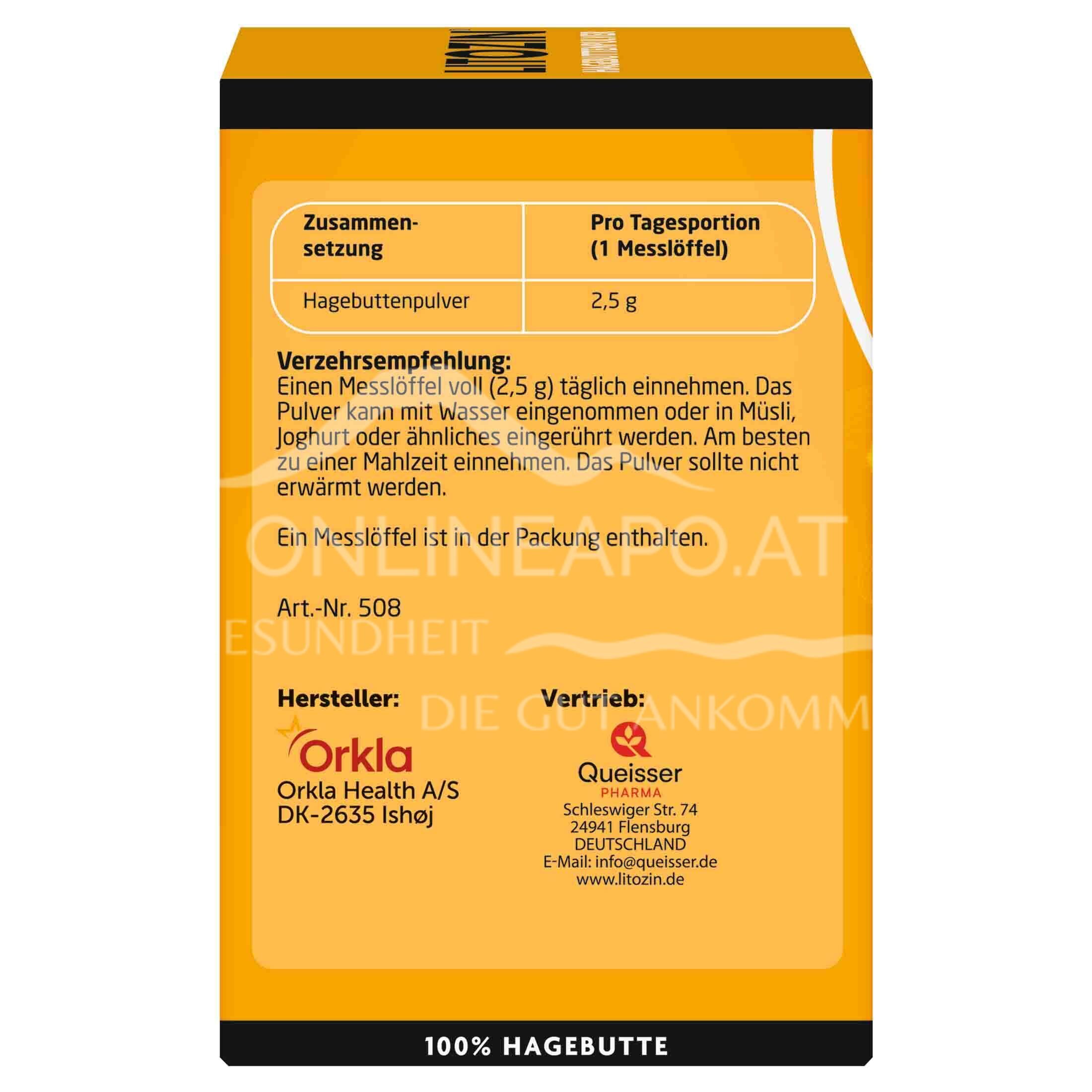 Das Litozin® Hagebuttenpulver ist ein spezielles Nahrungsergänzungsmittel welches aus den Früchten der Hagebutte hergestellt wird.