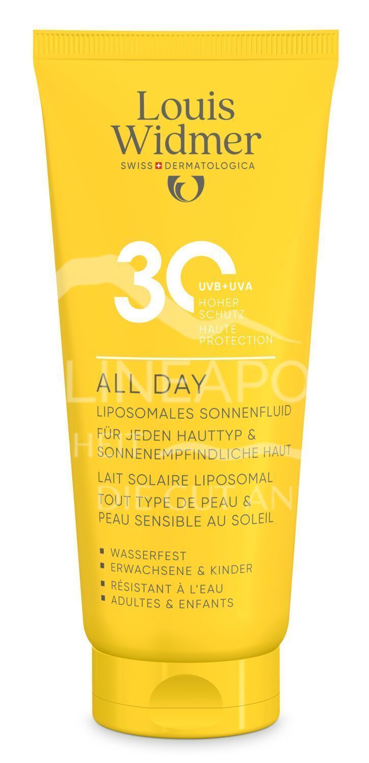 Entdecken Sie das Louis Widmer All Day 30 Sonnenfluid. Die innovative liposomale Formel sorgt für langanhaltenden UVA/UVB-Schutz, zieht schnell ein und fettet nicht. Ideal für empfindliche Haut, mit einem dezenten, leichten Duft. Sicher geschützt.