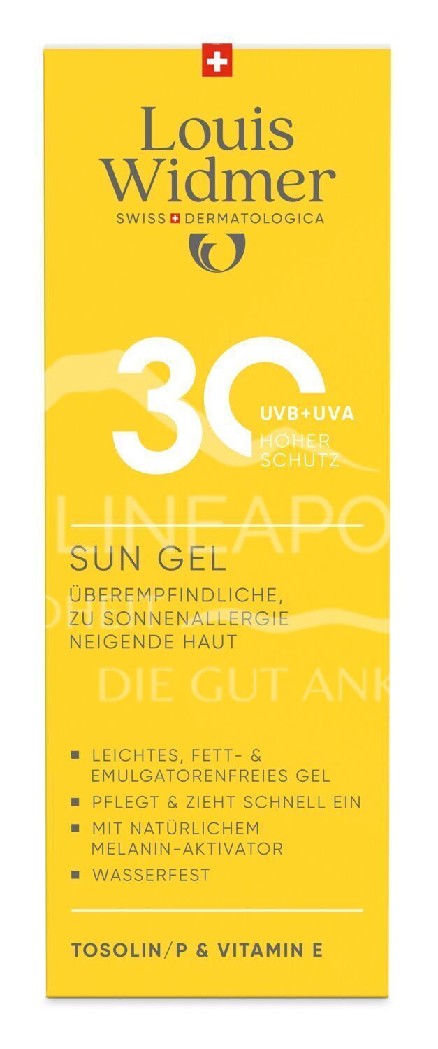 Entdecken Sie das Louis Widmer Sun Gel 30 (leicht parfümiert). Das nicht fettende Sonnengel bietet hohen UVA/UVB-Schutz (LSF 30) und ist wasserfest. Ideal für empfindliche, fettige Haut und bei Neigung zu Sonnenallergie (Mallorca-Akne). Pflegt mit Vitamin E.