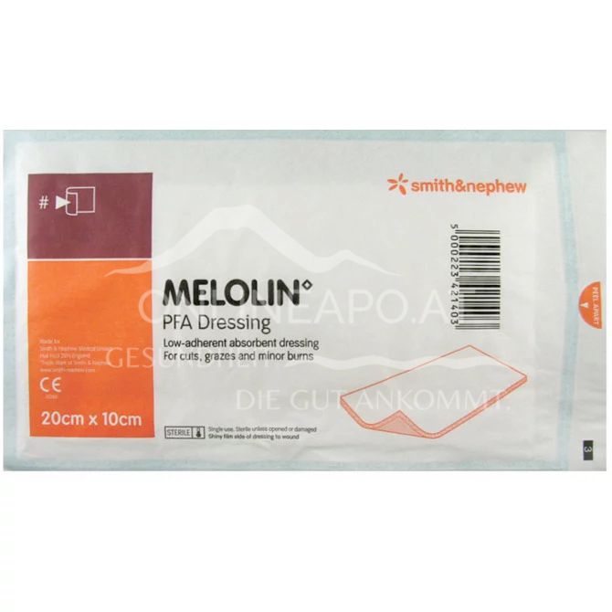 - MELOLIN eignet sich zur Primärversorgung wenig bis mäßig exsudierender postoperativer Wunden, Schnitt- und Schürfwunden sowie leichter Verbrennungen.