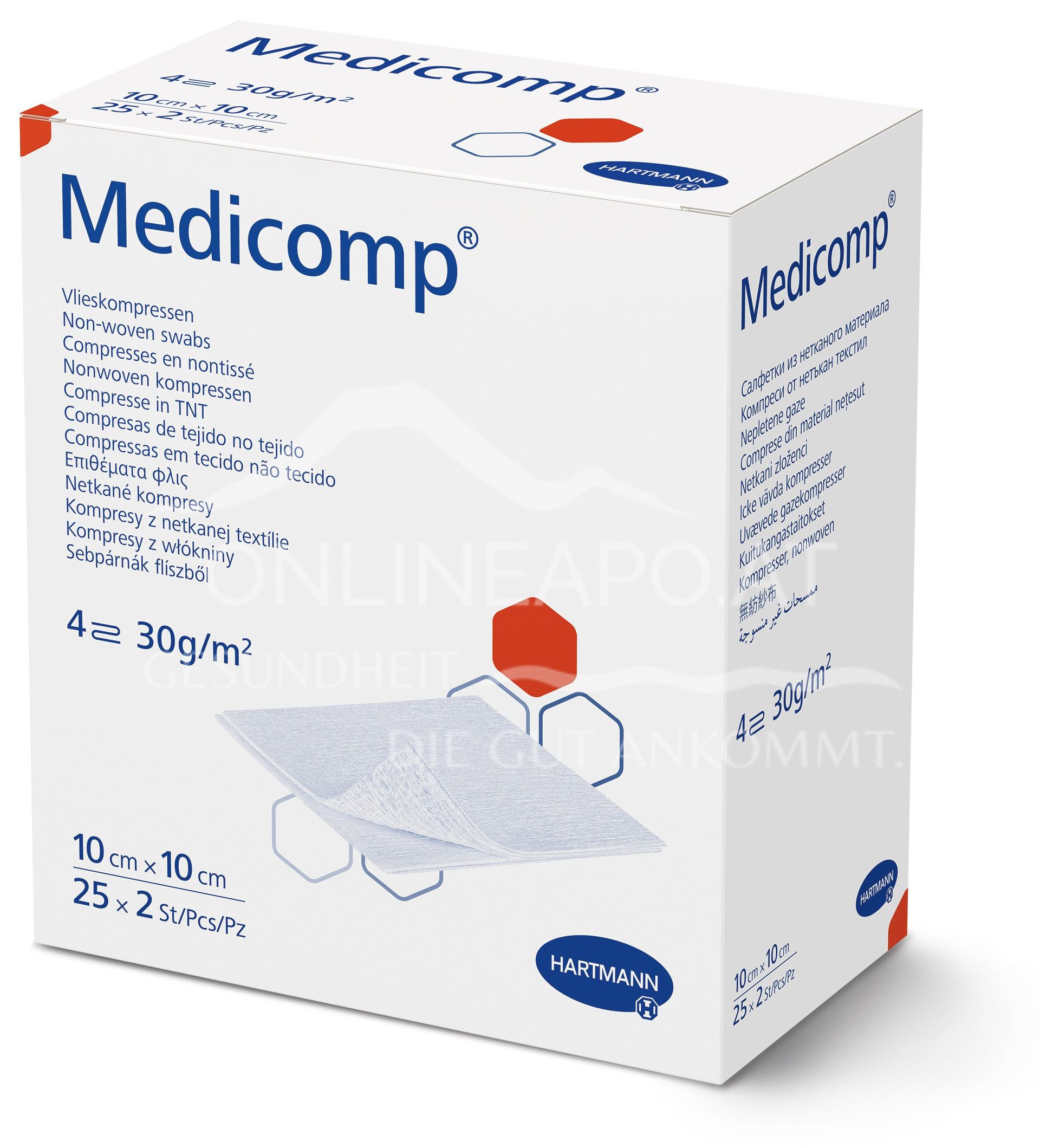 Medicomp® Vlieskompressen steril sind saugfähige und sterile Kompressen zur Versorgung von Wunden. Sie eignen sich optimal für die postoperative Versorgung, die ambulante Wundbehandlung und die Versorgung kleinerer Verletzungen.