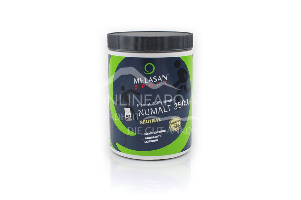 DasMelasan Sport Numalt 3500 Kohlehydratpulver Neutral ist ein Nahrungsergänzungsmittel zum Einrühren in Speisen und Getränke. Unterstützt den Körper bei einem erhöhten Kohlehydratbedarf, wie z.B. bei erhöhter Trainingsbelastung oder im Wettkampf.