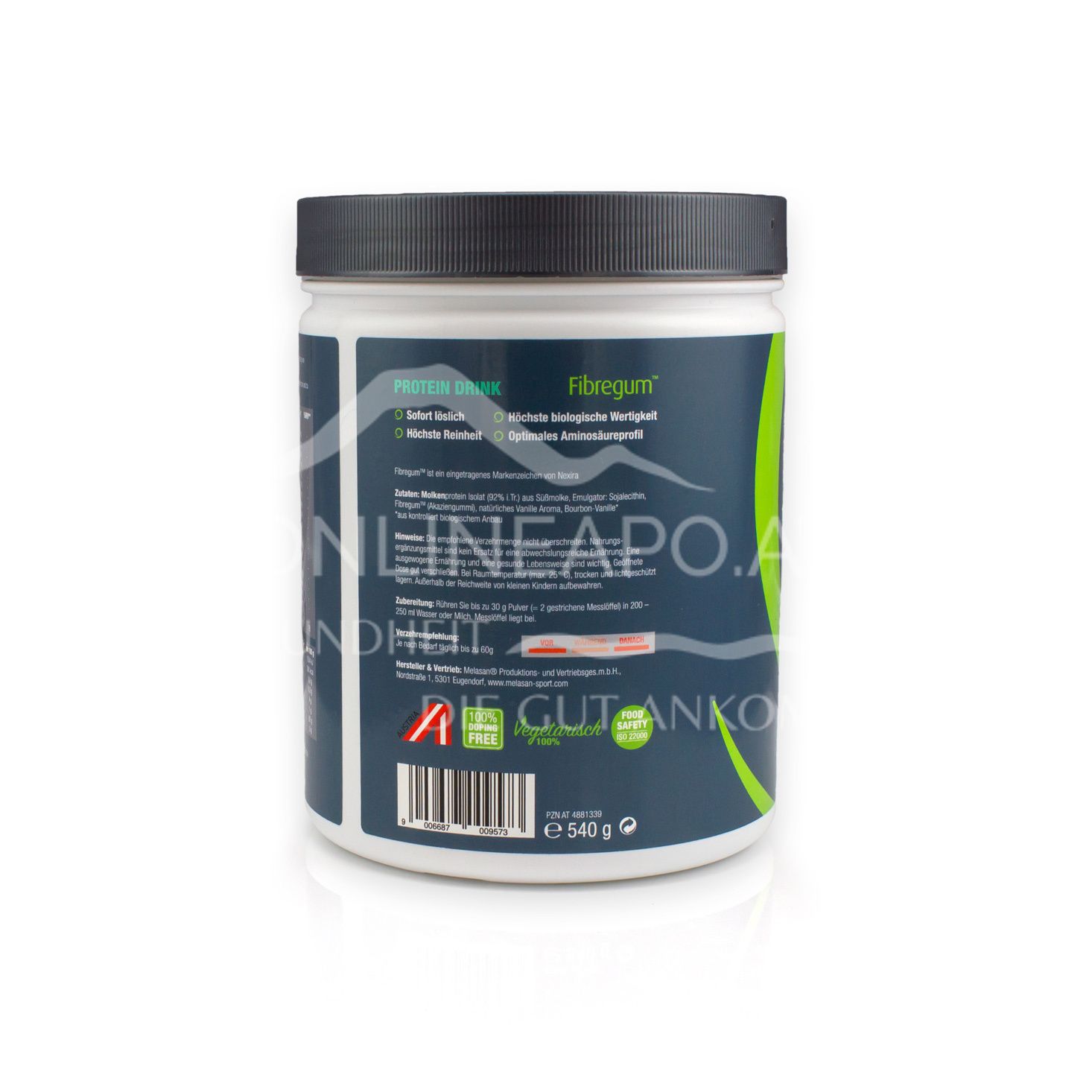 - Hochwertiges Molkeneiweiß (gewonnen durch Cross-Flow Membran Filtration)