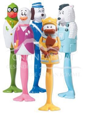 Pfiffige Zahnbürsten motivieren! Bei der Kid’s Brush ist der "Oberkörper" eine aufklappbare Schutzhülle. Eine optimale Luftzirkulation wird durch die Öffnung in der Schutzkappe gewährleistet. Der Griff der Zahnbürste dient gleichzeitig als praktischer Standfuß. Kid´s Brush wird in fünf ansprechenden Tierfiguren angeboten.