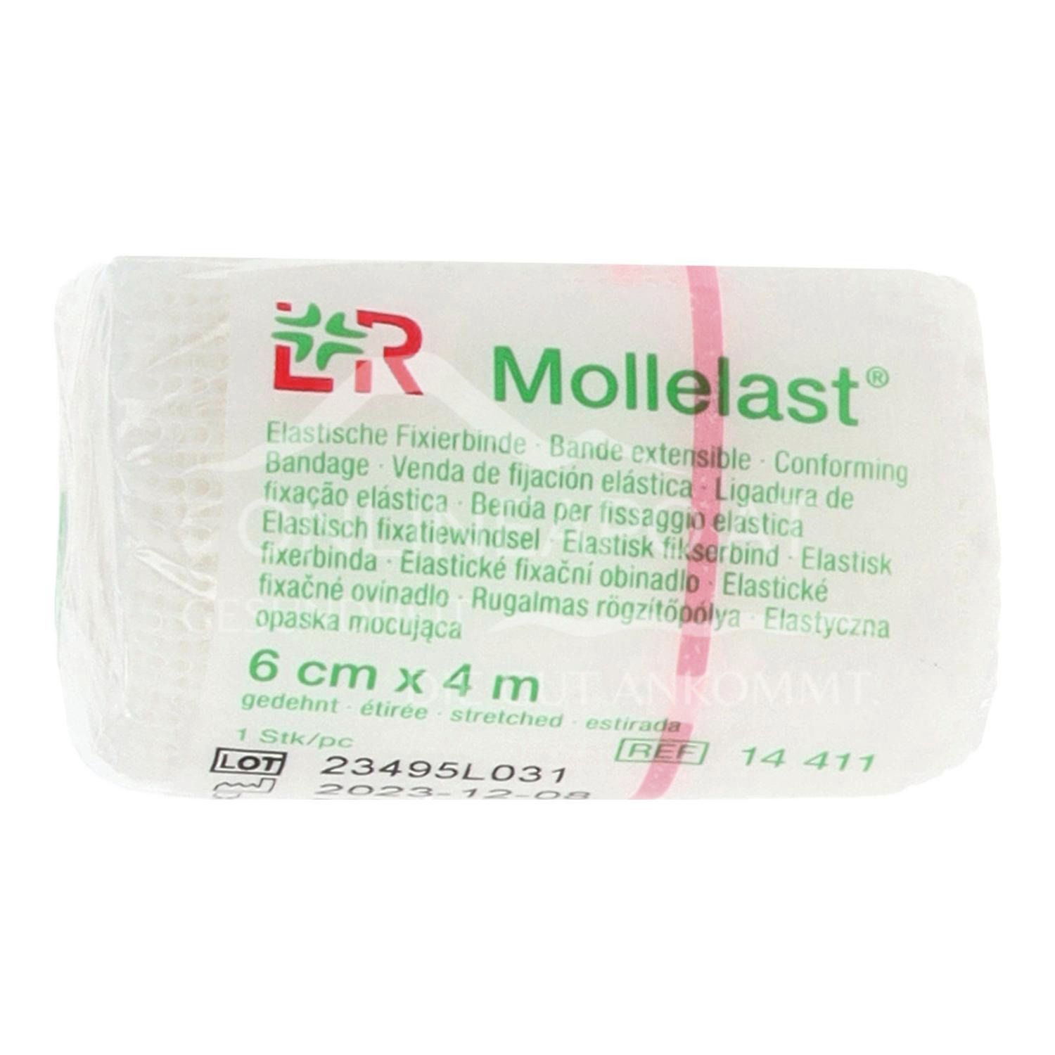 Mollelast® ist eine elastische Fixierbinde von Lohmann & Rauscher, die für Fixierverbände aller Art verwendet werden kann. Sie ist besonders angenehm zu tragen, luftdurchlässig und schmiegt sich faltenfrei an.