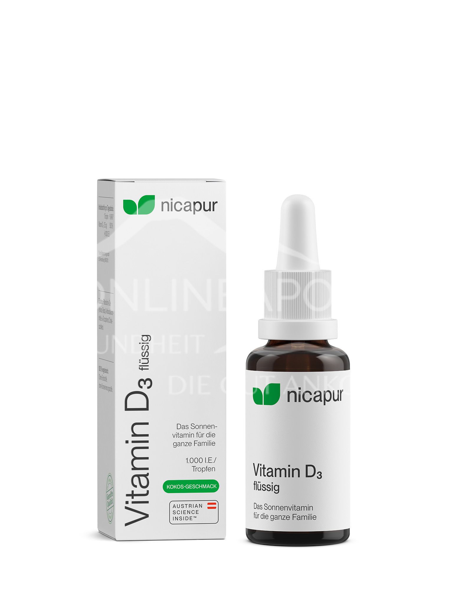 NICApur Vitamin D3 flüssig Tropfen ist ein Nahrungsergänzungsmittel, das Vitamin D3 in seiner natürlichen Form Cholecalciferol enthält. Vitamin D3 ist ein essentielles Vitamin, das für die Gesundheit von Knochen, Muskeln und dem Immunsystem wichtig ist.