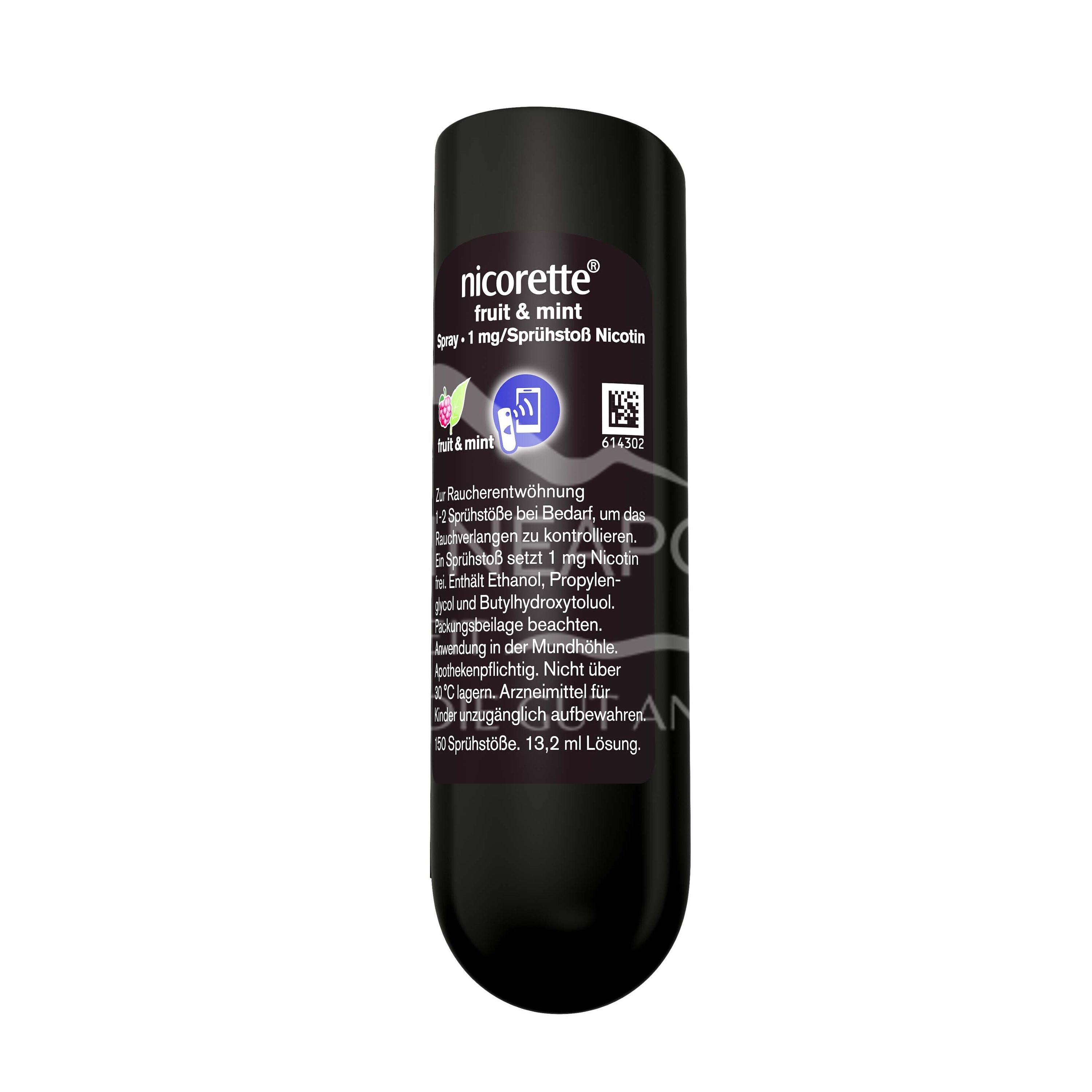 - Was Nicorette Fruit & Mint Spray enthält: Der Wirkstoff ist Nicotin. Ein Sprühstoß setzt 1 mg Nicotin frei