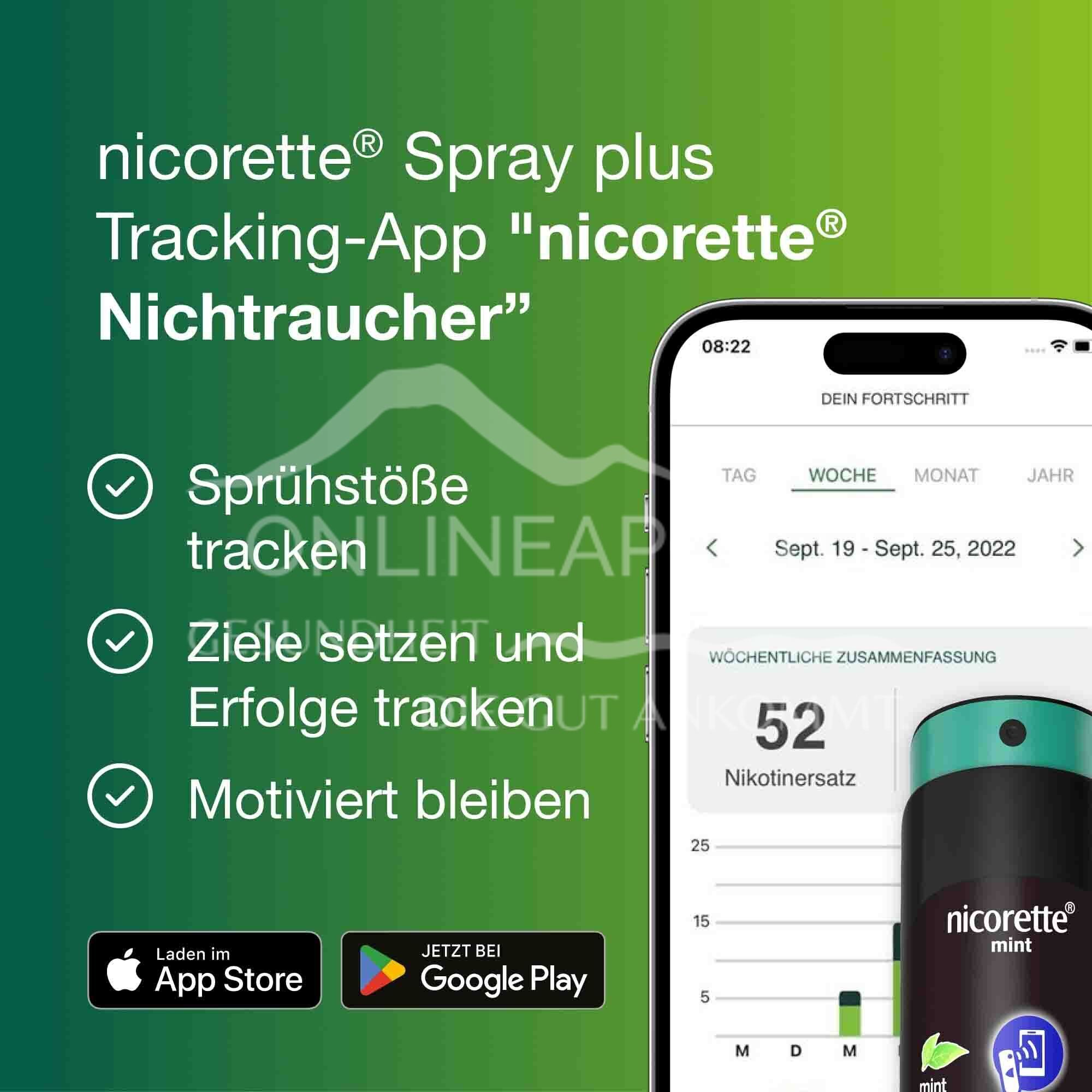- Mit Tracking-App: Die neue, motiverende Tracking-App kann mit dem nicorette® Spray verbunden werden. Jetzt einfach App downloaden, Sprühstöße tracken, selbst Ziele setzen und Fortschritte verfolgen