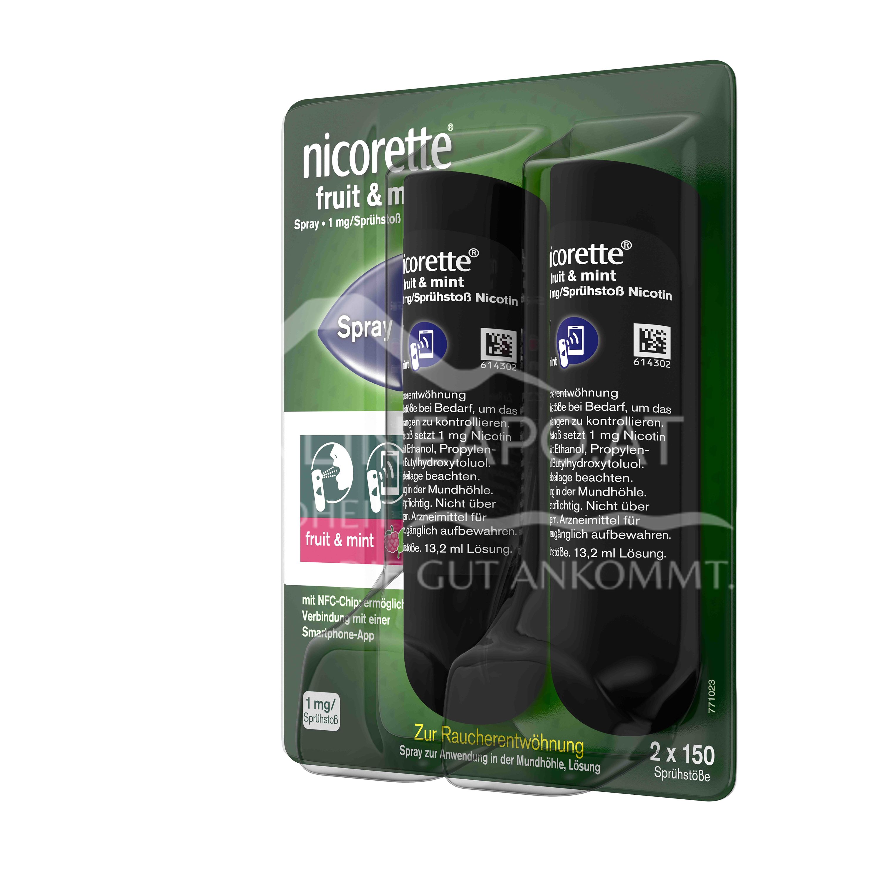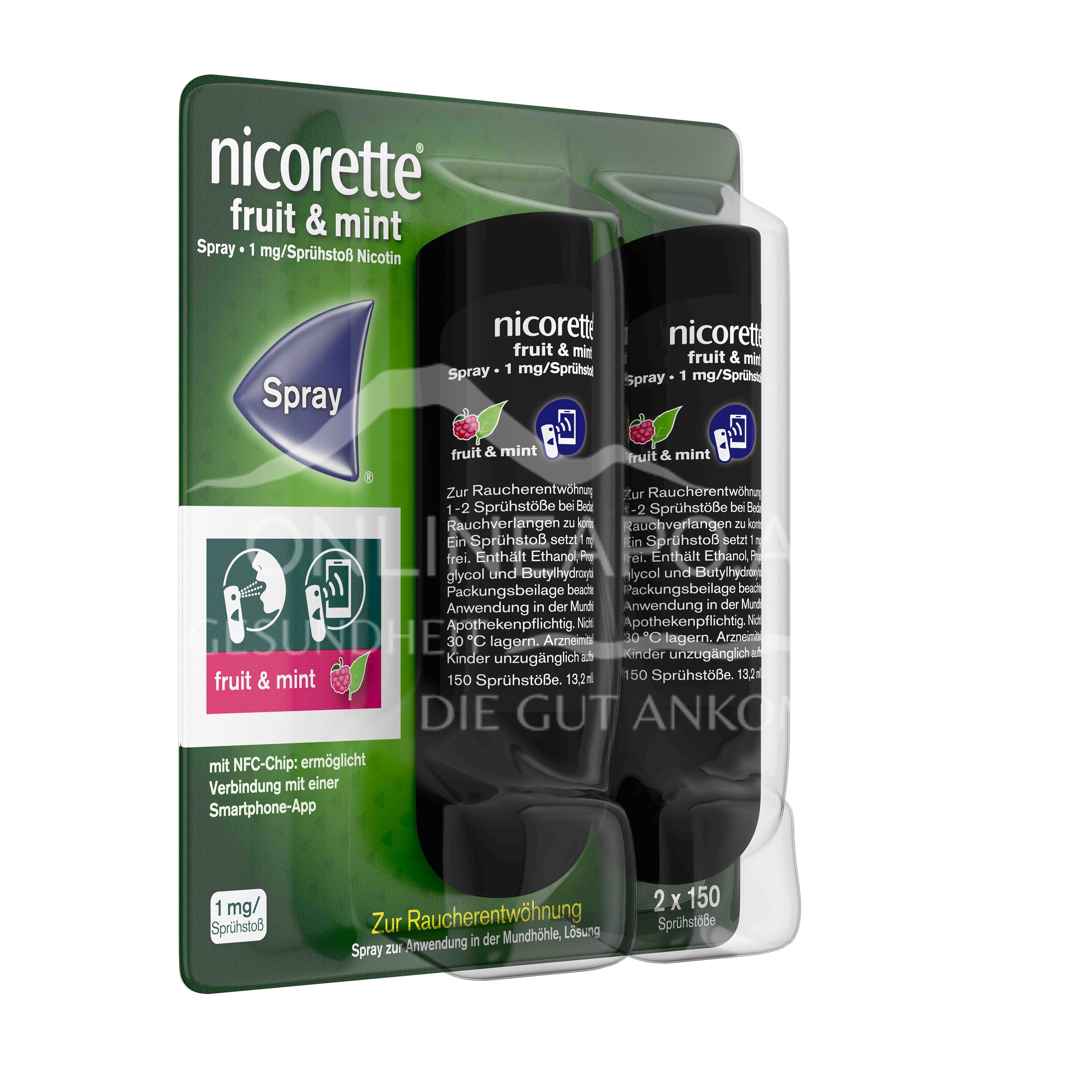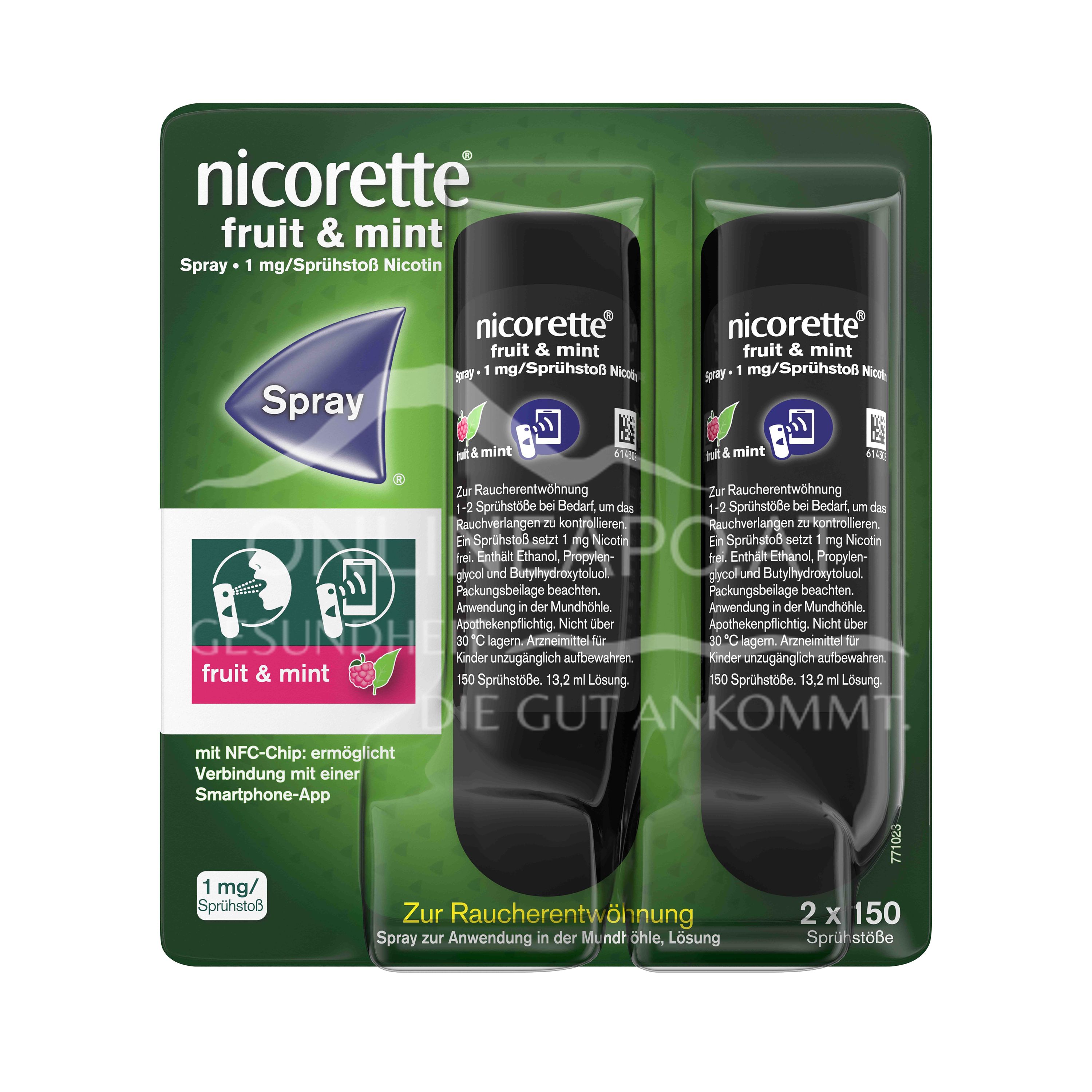 - Was Nicorette Fruit & Mint Spray enthält: Der Wirkstoff ist Nicotin. Ein Sprühstoß setzt 1 mg Nicotin frei