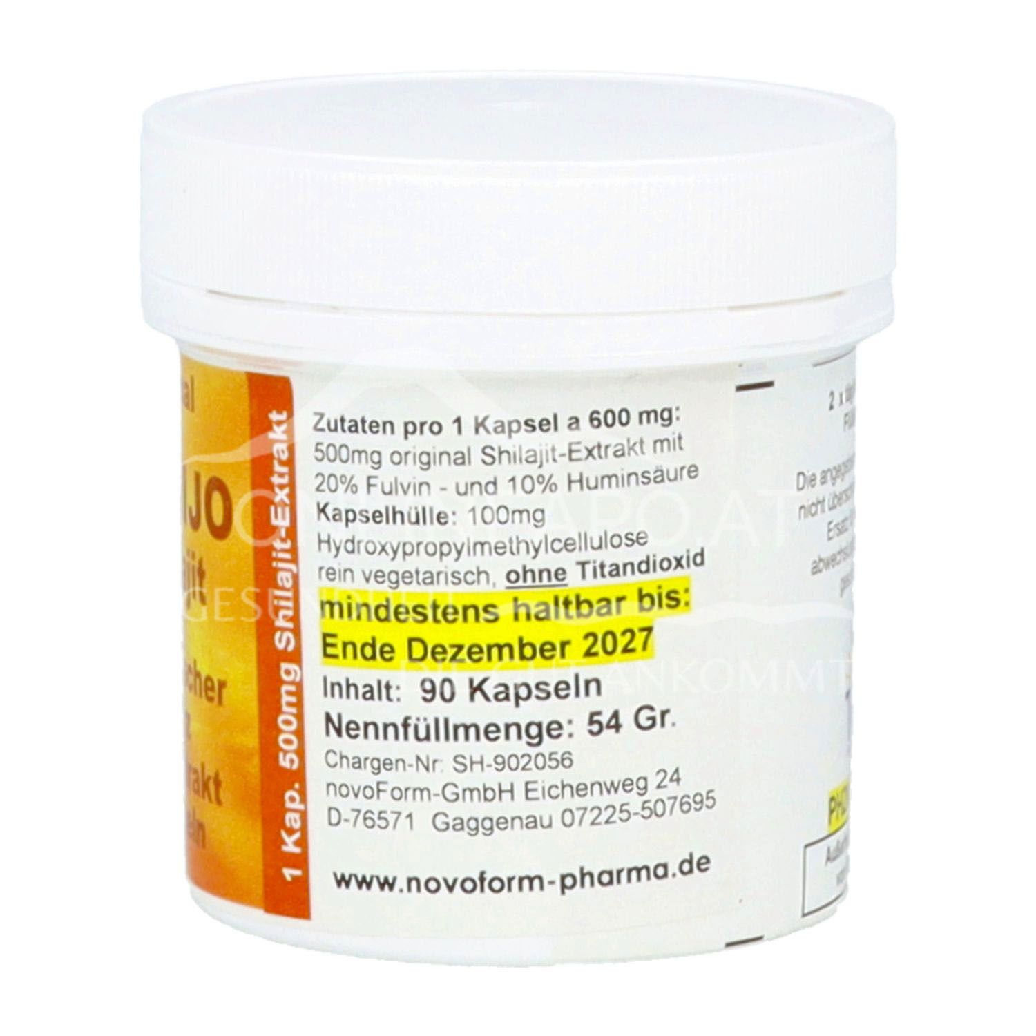 Entdecken Sie die Novoform Pharma Mumijo Shilajit Kapseln. Hochdosierter organischer Vollextrakt, standardisiert auf einen hohen Gehalt an Fulvinsäure. Profitieren Sie von der reinen Kraft des "schwarzen Goldes" in geprüfter Premium-Qualität.