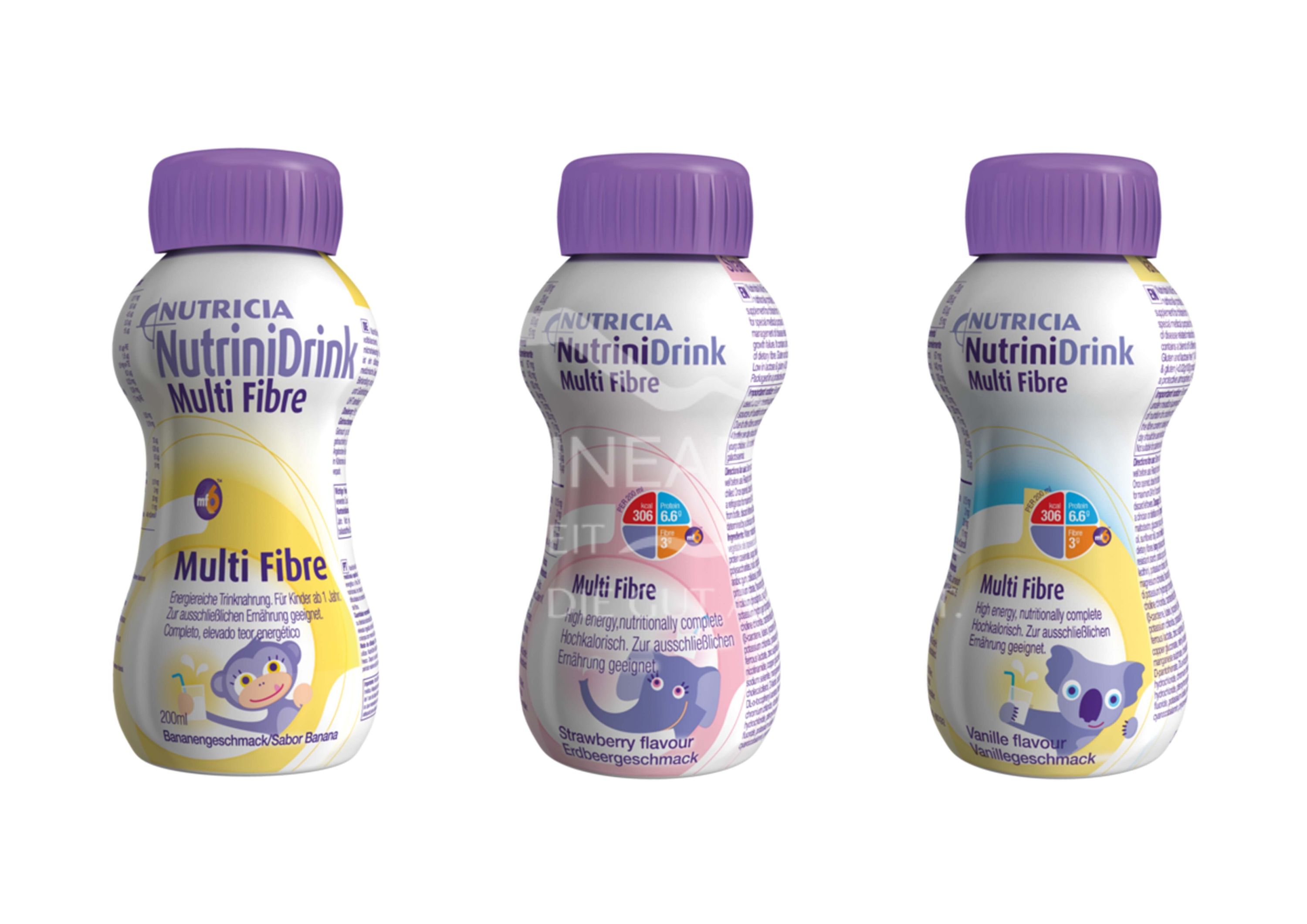 - Kontraindikationen: NutriniDrink Multi Fibre darf nicht eingesetzt werden, wenn sich eine enterale Nährstoffzufuhr generell verbietet oder Intoleranzen gegenüber einem der enthaltenen Inhaltsstoffe bestehen. NutriniDrink Multi Fibre ist ungeeignet für Kinder unter 1 Jahr und bei Patienten mit Galaktosämie.